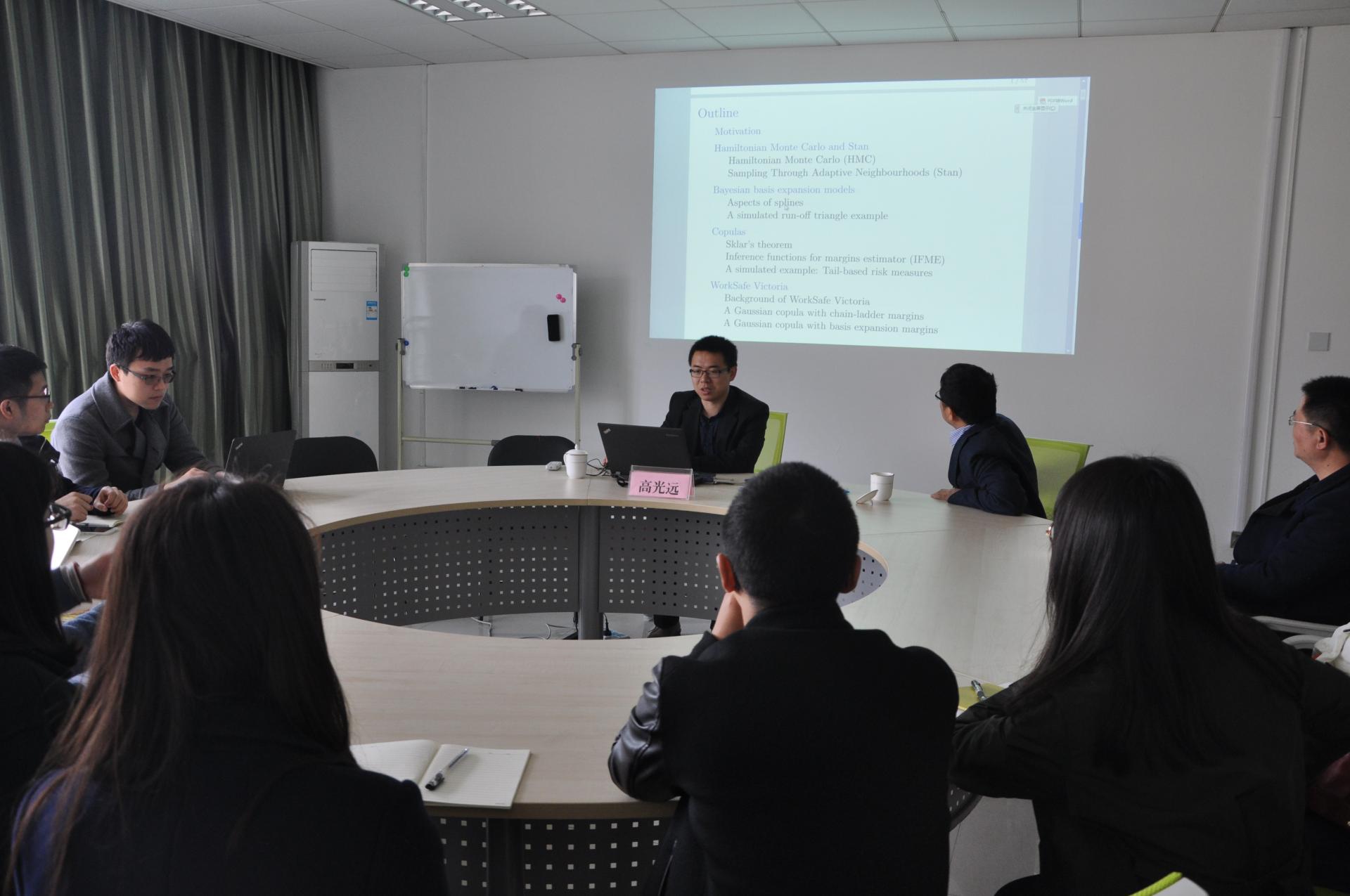 3月17日,澳洲国立大学商学院金融、精算和应用统计学研究所高光远博士来校作了题为“应用基扩展边缘分布的copulas模型来计算总计保险准备金:维多利亚州Work Safe工伤保险实证研究”的学术报告。报告会由黄色仓库