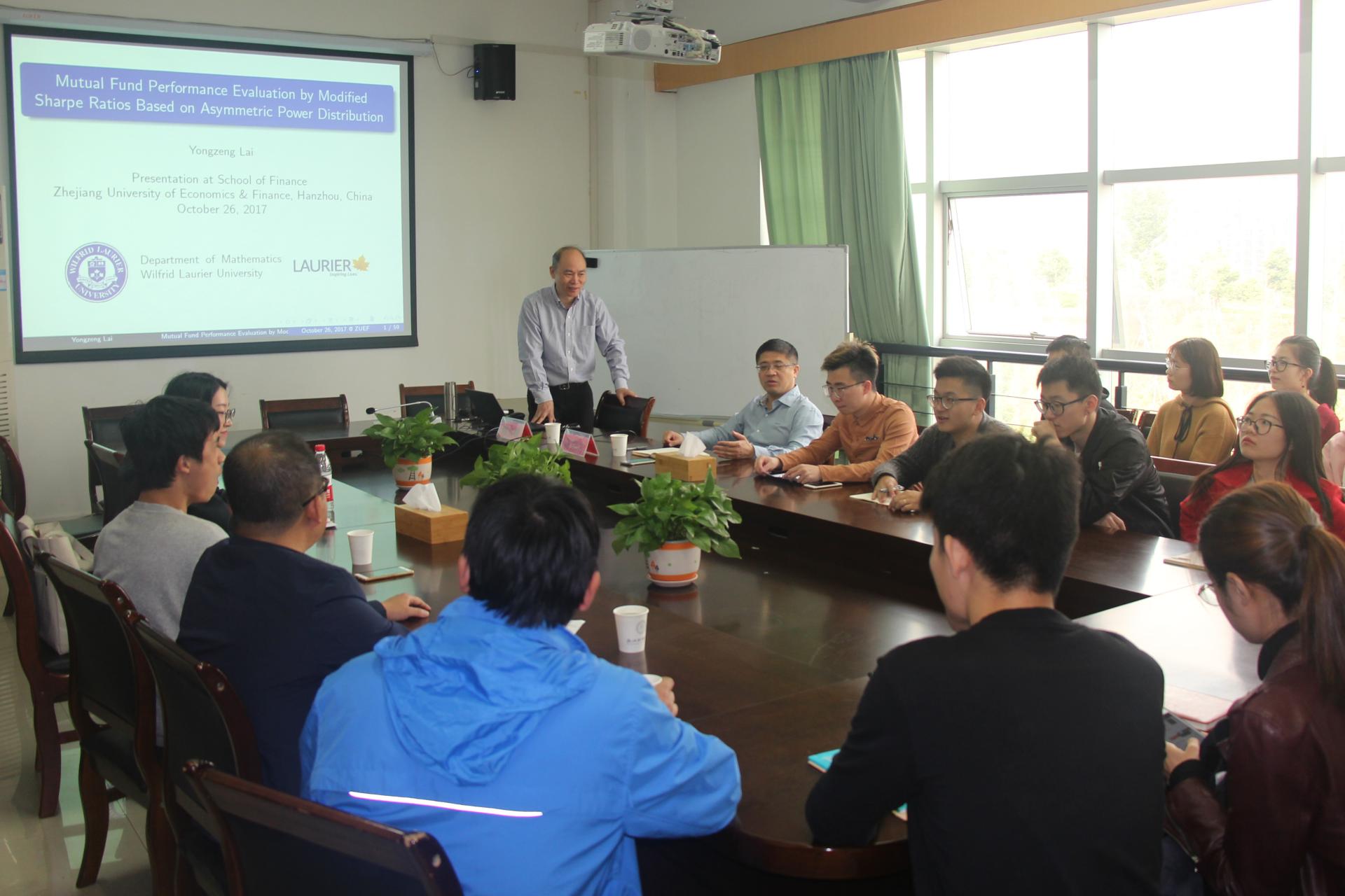 10月26日上午10点,加拿大劳瑞尔大学金融数学系全职教授赖永增教授在黄色仓库