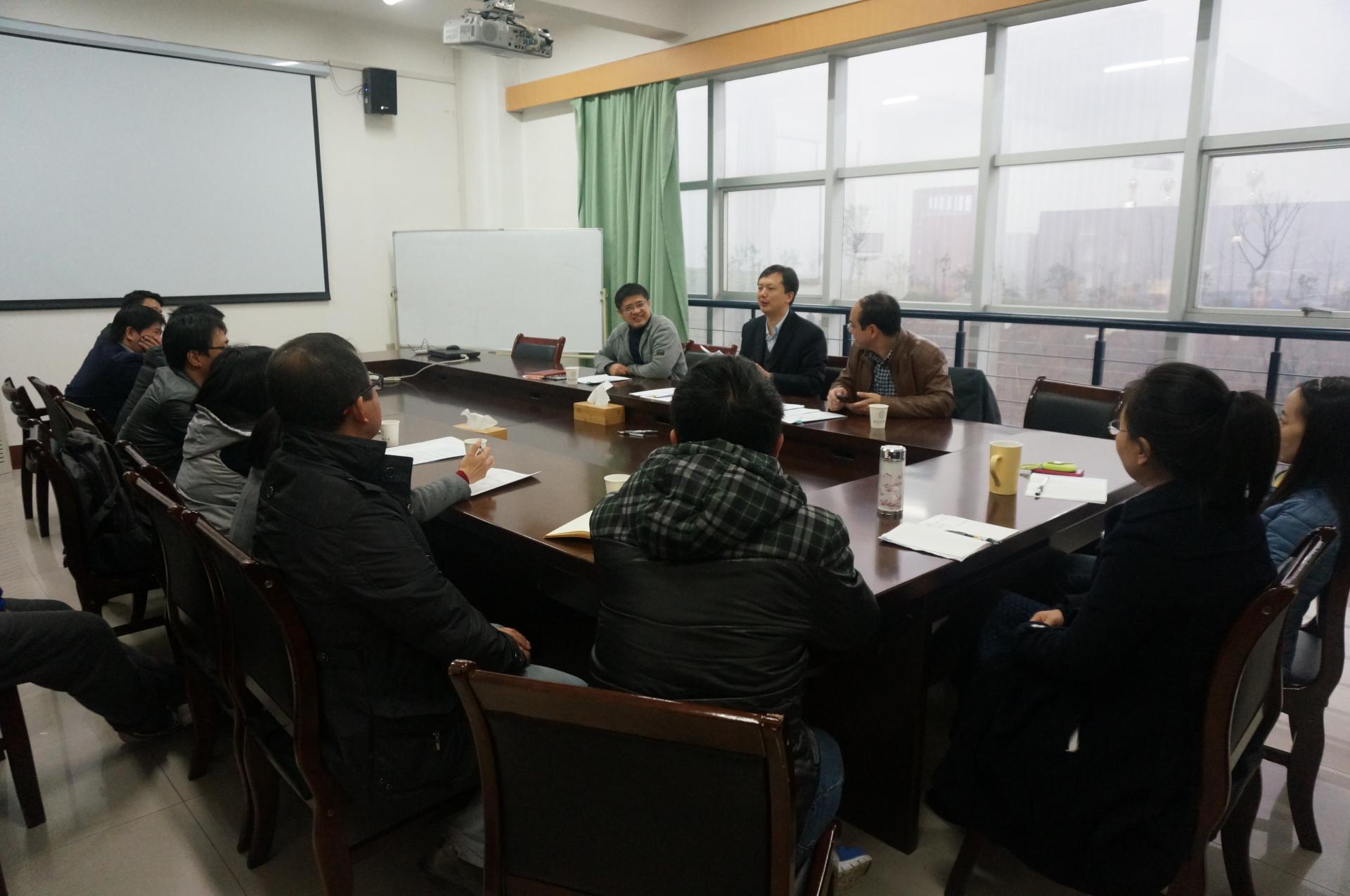 教师交流讨论有关基金申报的问题,两位专家均为国家杰出青年科学基金获得者,相关经验十分丰富。主持本次交流会的为黄色仓库