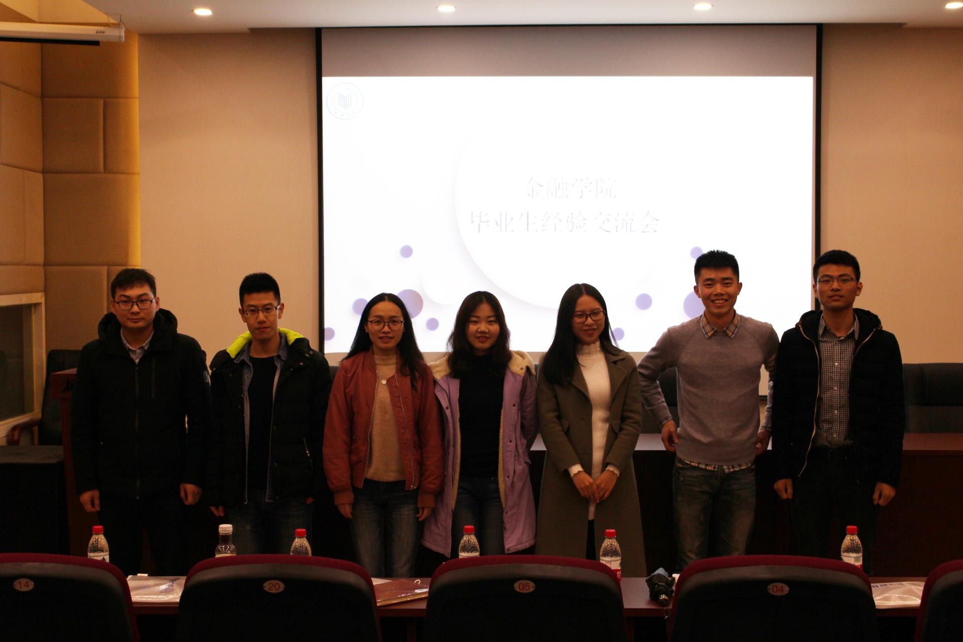 2017届独具代表性的优秀毕业生。在交流会开始,成功留校的施淑珍同学分享了自己在研究生学习期间担任研会主席以及兼职辅导员时期的经验和收获,她建议同学们在校期间的发展要与职业生涯规划之路保持一致的方向;随后,就职于东阳农商银行投资银行部的张联峰同学讲述了如何提高自身就业的综合能力,分享了诸如制作简历、面试技巧等方面的经验;接着来自杭州金融投资集团有限公司的陈文俊同学,结合自身的学习经历以及专业的就业形势提出了许多中肯的建议;就职于南华期货股份有限公司的张勇同学告诉同学们一方面要注重知识的积累和能力的培养,另一方面也要懂得突出自身优势;来自毕马威华振会计事务所的赵华同学则梳理了各大会计事务所的招聘流程,详细讲解了四大会计事务所从网申、笔试到面试的不同之处与应聘技巧;成功考入中国工商银行浙江省分行的陈艳同学,和大家热情分享了两年之内考出CPA证书的经验,解答了大家在考证方面的许多疑惑;最后,在郭和资产管理有限公司就职的范时昊同学鼓励同学们在实习和求职时要热情积极,把握机遇主动出击。交流会受邀嘉宾热情幽默、妙语连珠,现场气氛活跃,同学们热情高涨纷纷表示收获颇多。