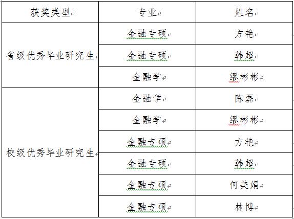 根据浙江省教育厅办公室《关于对2019届浙江省普通高等学校优秀毕业生进行确认的通知》(浙教办函〔2019〕10号)和《黄色仓库 研究生荣誉称号评定办法》(浙财大[2014]91号)文件精神及黄色仓库 党委研究生工作部关于做好2019届省级、校级优秀毕业研究生评定工作的通知,经学生自主申请、评审委员会初评认定,现将获得2019届省级、校级优秀毕业研究生的推荐经名单公示如下: