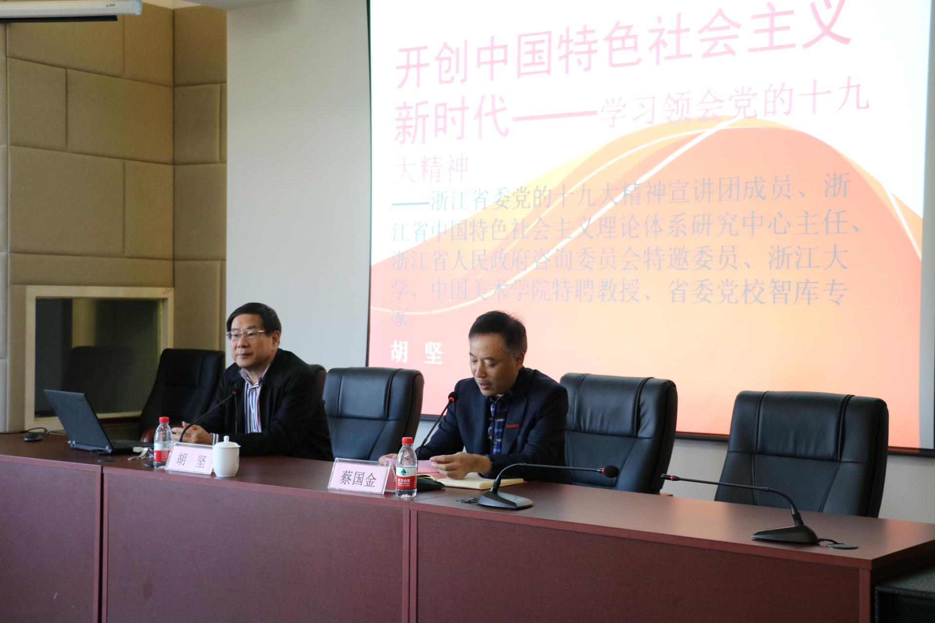 党委特邀原浙江省委宣传部常务副部长胡坚,以“开创中国特色社会主义新时代——学习领会党的十九大精神”为主题进行专题辅导。学院全体师生党员聆听了本次党课,党课由学院党委书记蔡国金主持。