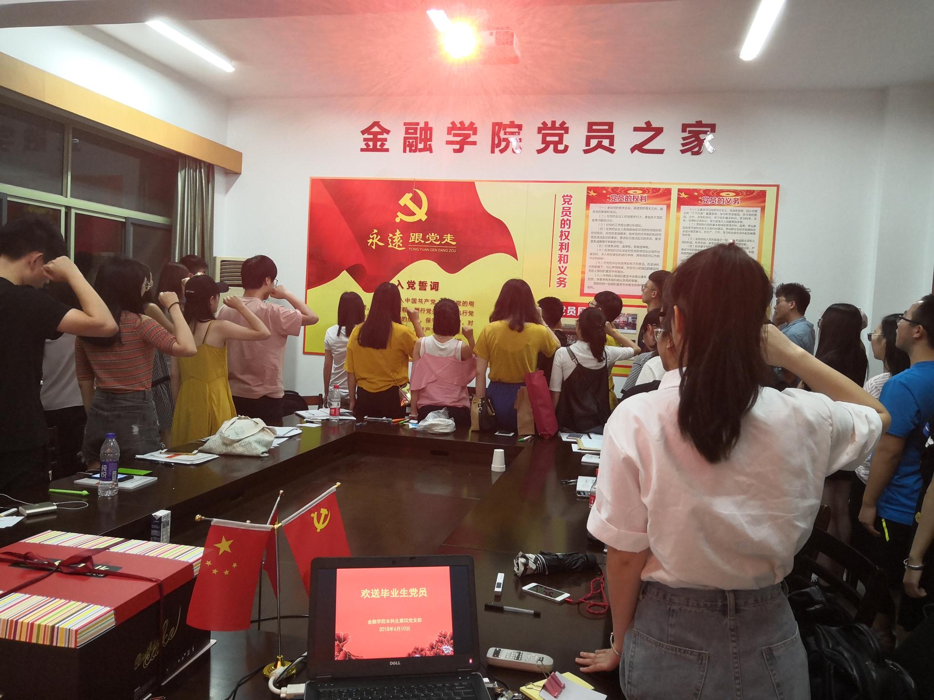 主题党日活动在嘹亮的国歌声中开始,毕业班全体党员佩戴党徽,面对党旗庄严重温入党誓词。宣誓结束后,14保险班梁露丹同学代表全体毕业班党员郑重承诺,今后将时刻牢记入党誓词,永远保持共产党人的本色,不辱时代使命,不负人民期望,用青春奋斗谱写个人理想,用不懈努力将伟大的中国梦变成现实。