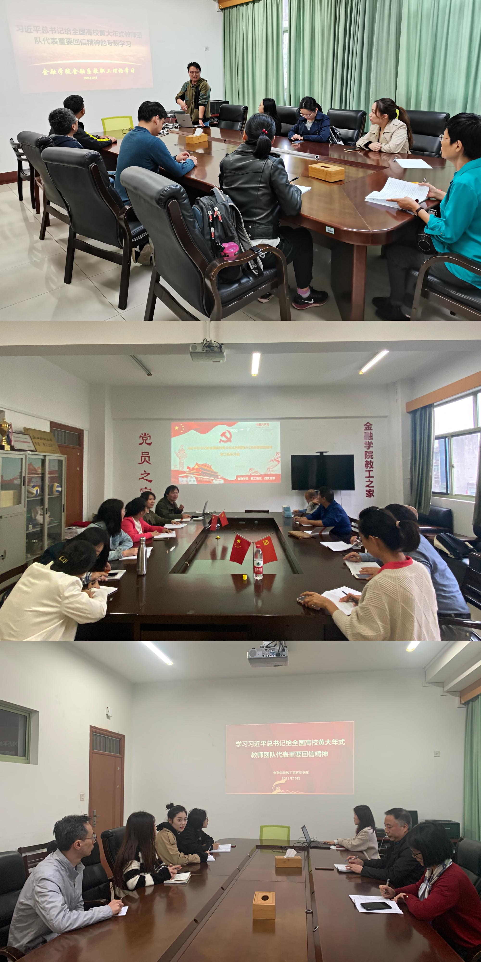 另外,学院各教工党支部均通过专题研讨会、观看《黄大年》电影、撰写学习心得体会等形式,组织党员老师、海外留学归国教师等开展了回信 强使命 勇担当”的主题党日活动。大家深入学习了习近平总书记给全国高校黄大年式教师团队代表的回信精神,纷纷为黄大年牺牲小我、成就大我的精神而感动,并围绕黄大年教授的感人事迹和习近平总书记的回信精神,结合党史学习教育展开了热烈讨论。并均表示在今后的工作中要以习近平新时代中国特色社会主义思想为指引,继承和发扬黄大年精神,牢固立德树人理念,爱党爱国爱校,胸怀大局,努力将“学为人师,行为世范”的好老师要求内化于心、外化于行,争做新时代的“四有”好老师,多为学校高质量发展建言献策。