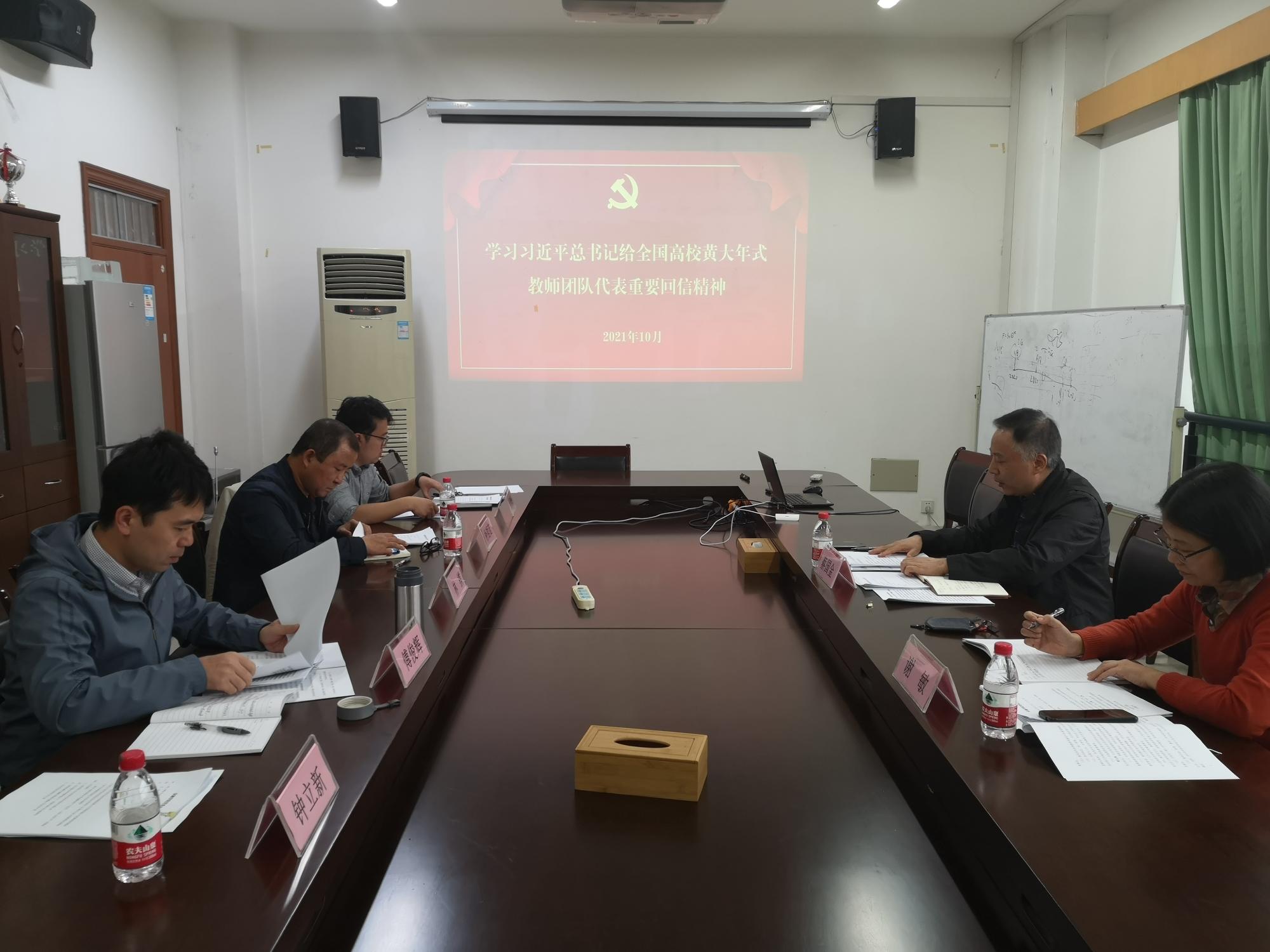 10月20日,学院党委理论中心组召开专题学习会,传达学习习近平总书记给全国高校黄大年式教师团队代表回信精神。会议指出,习近平总书记给全国高校黄大年式教师团队代表的回信,内涵丰富、情深意切,充分体现了以习近平同志为核心的党中央对教育事业的高度重视和对广大教师的深情厚爱,为我们落实立德树人根本任务,做好教书育人、科研创新等工作指明了前进方向。会议强调,学院上下要迅速掀起学习贯彻回信精神热潮,引导教师立德修身、潜心治学、开拓创新,当好学生成长的引路人;要将学习贯彻工作与党史学习教育、巡视整改工作结合起来,抓好学院师德师风建设;要做好教师管理工作,加大对先进教师典型的宣传力度,调动教师积极性和主动性,将总书记回信精神切实落实在各项工作中。