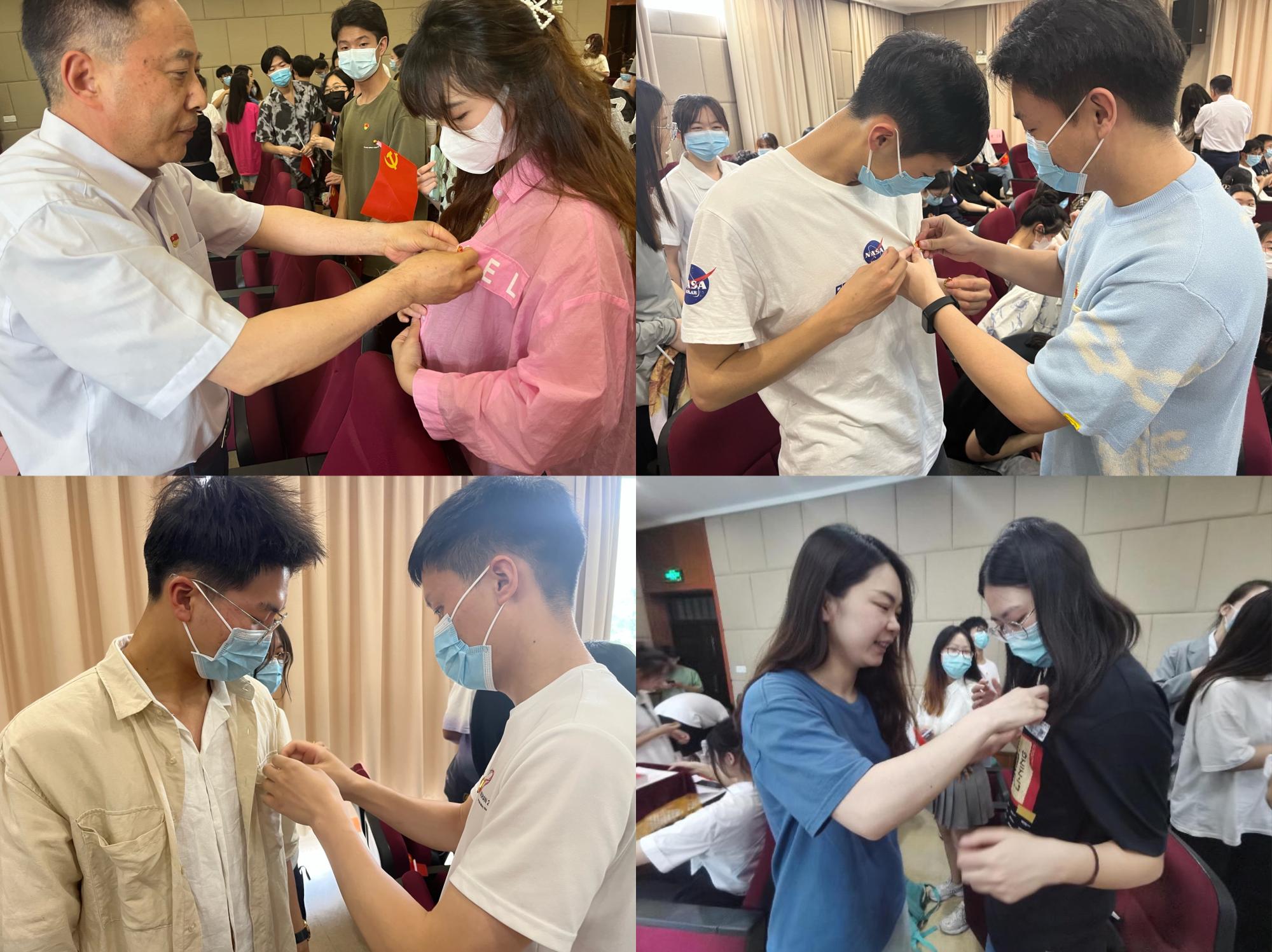 党委在学院楼202报告厅举行2022年上半年新发展党员入党宣誓仪式。学院党委书记蔡国金、各学生党支部书记、支部委员、老党员代表及全体新发展党员出席了本次仪式。仪式由专职组织员翟丽媛主持。