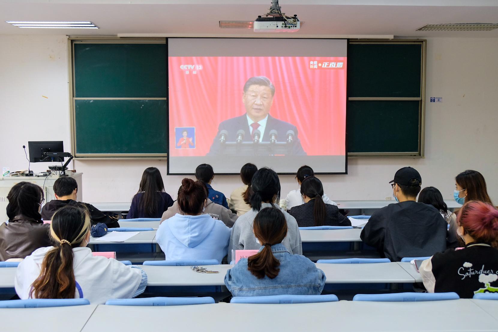 黄色仓库 党委组织师生收看党的二十大开幕会盛况