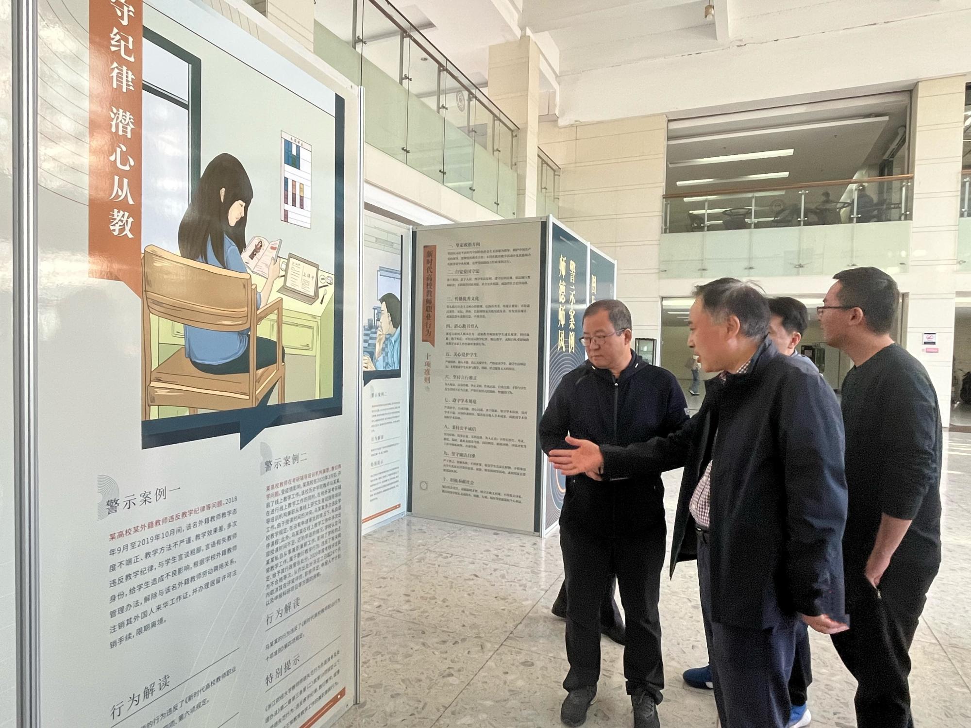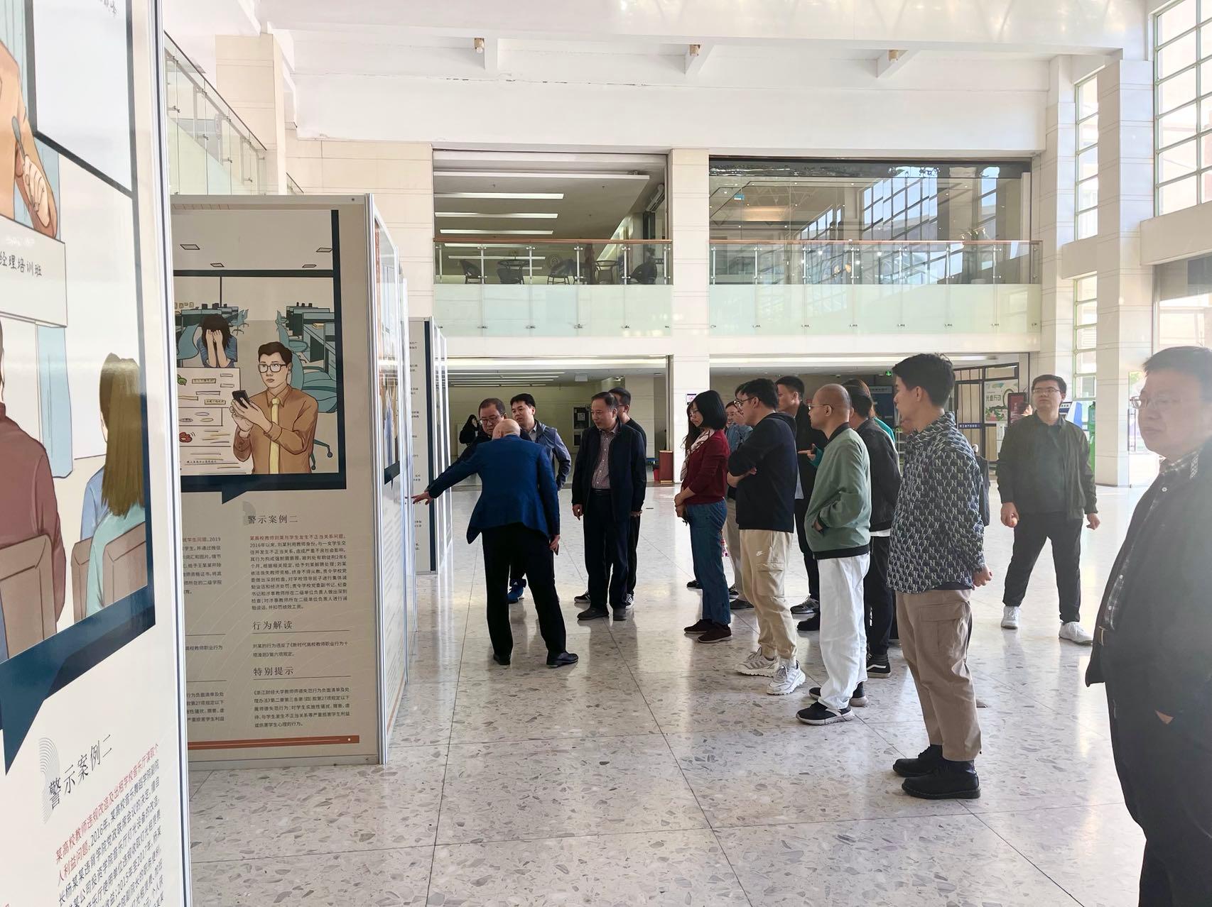 为进一步加强师德师风建设,明确师德底线,近日,近日学院组织教职工参观学校师德师风警示案例图片展。学院领导班子成员、全体教职工参加学习。