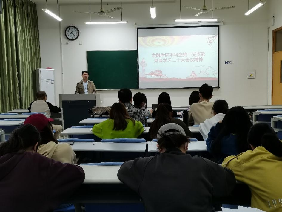 本科生第二党支部在学院109教室举行学习党的二十大精神暨“敲反腐警钟,倡廉洁风尚”警示教育主题党日活动。学院副院长傅俊辉莅临出席,活动由支部书记李文生主持。