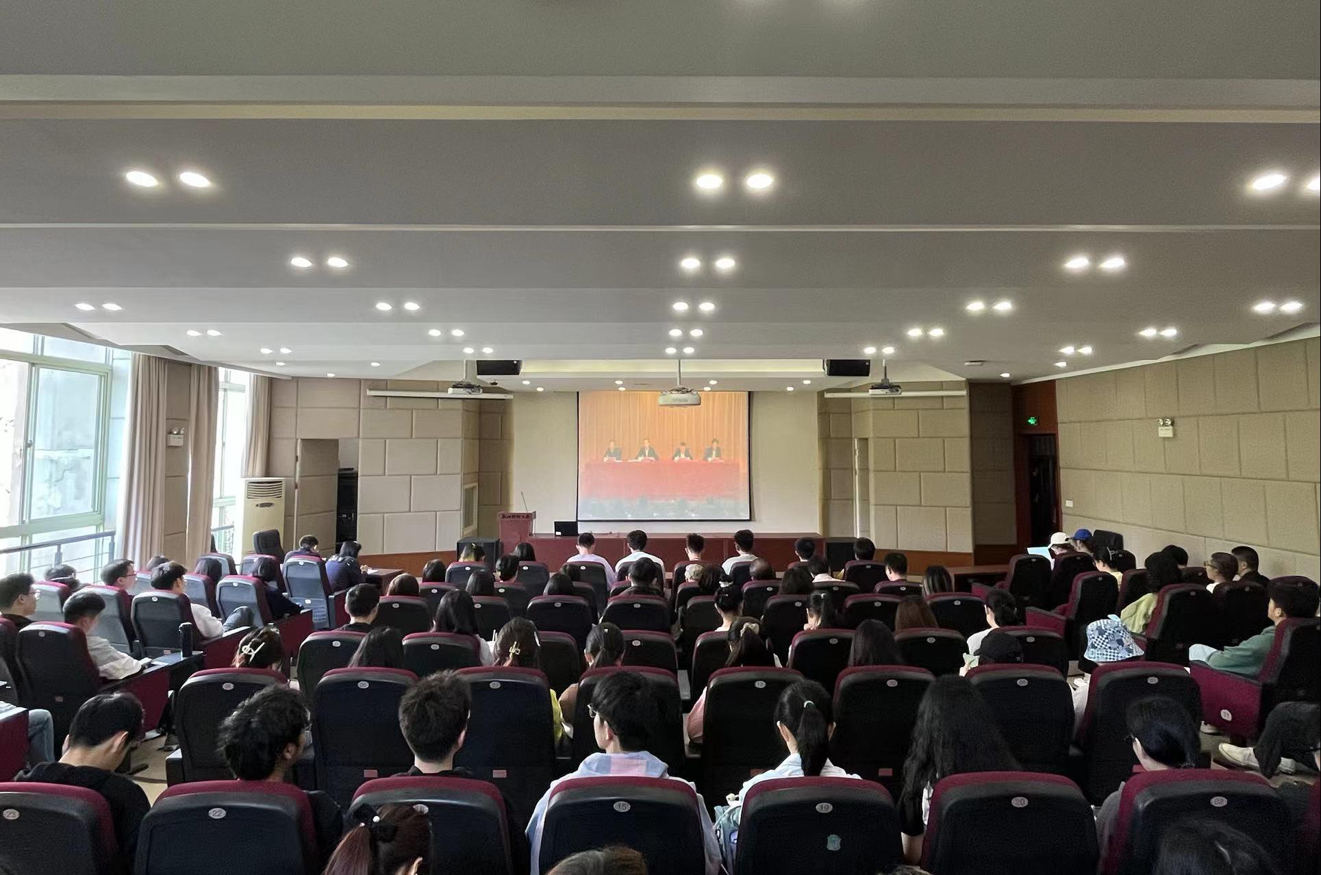 党委组织师生党员在学院楼202报告厅分会场集中观看“学校深入开展学习贯彻习近平新时代中国特色社会主义思想主题教育动员大会”线上直播。校党委书记李金昌主持会议并作动员讲话。省委第十五巡回指导组组长谢树华作指导讲话。第十五巡回指导组副组长王登先等指导组全体成员出席会议。
