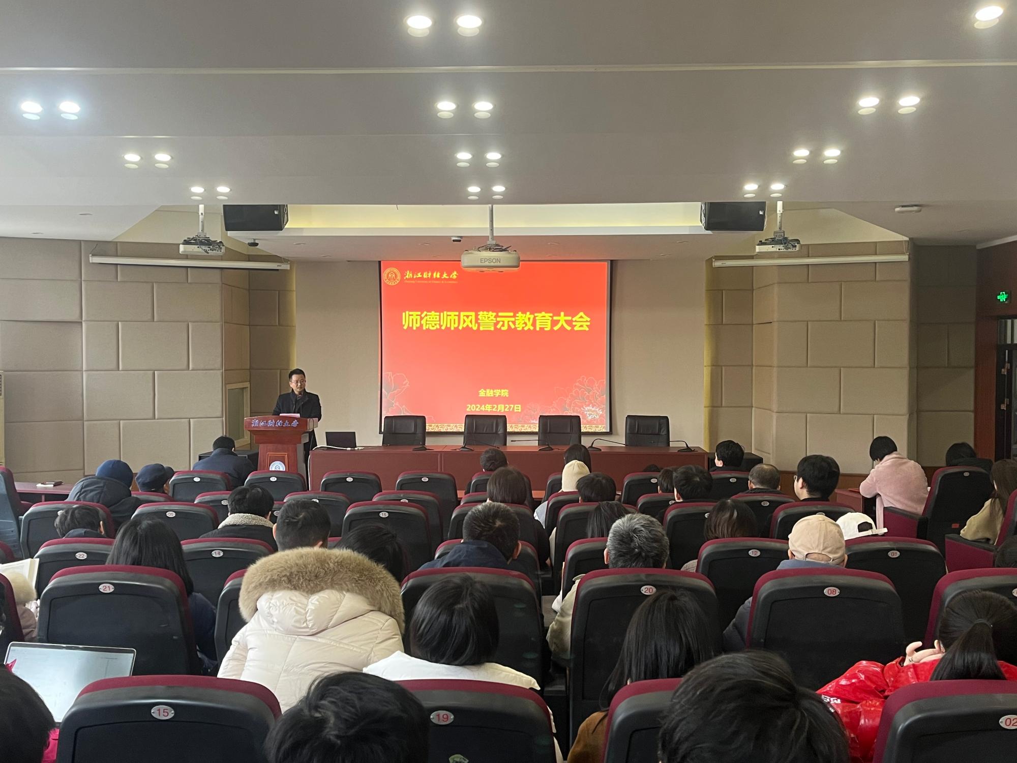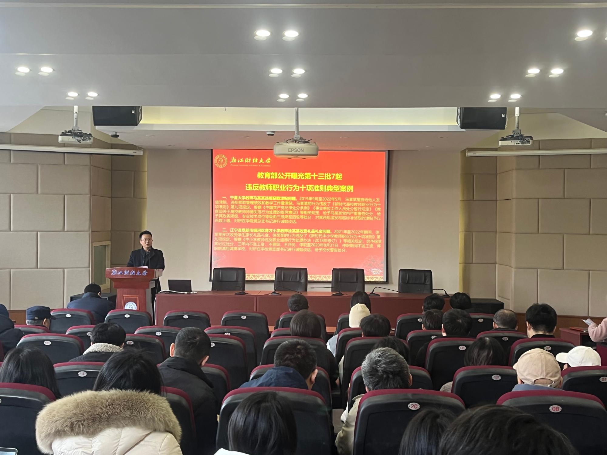 在202报告厅召开师德师风警示教育大会,学院领导班子成员、全体教职工参加会议。会议由学院党委书记黄文礼主持。