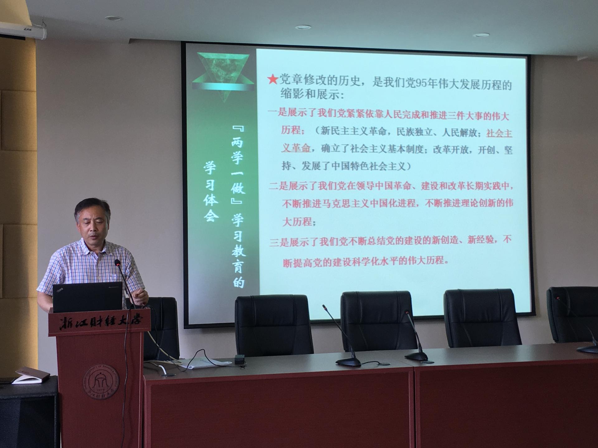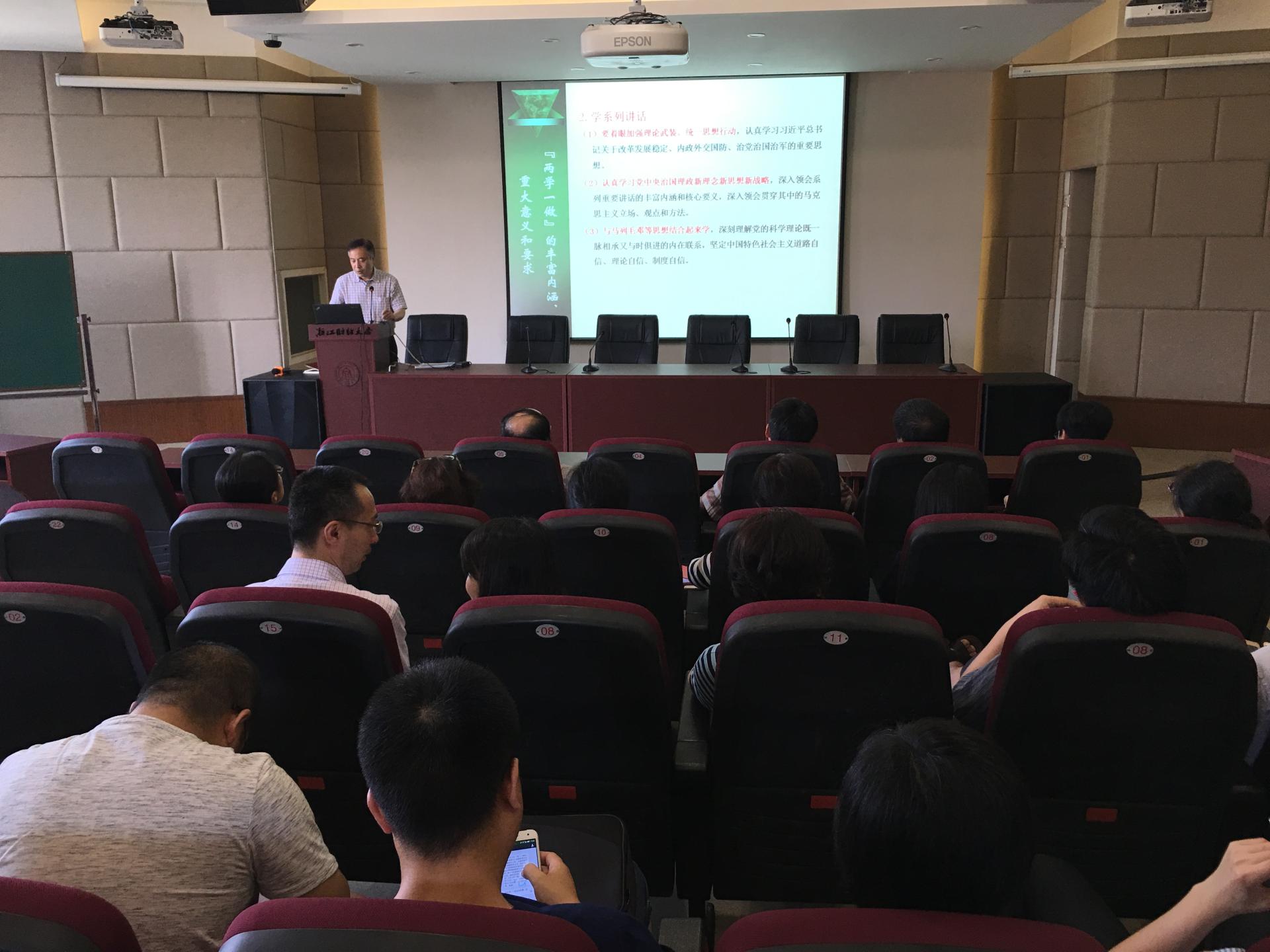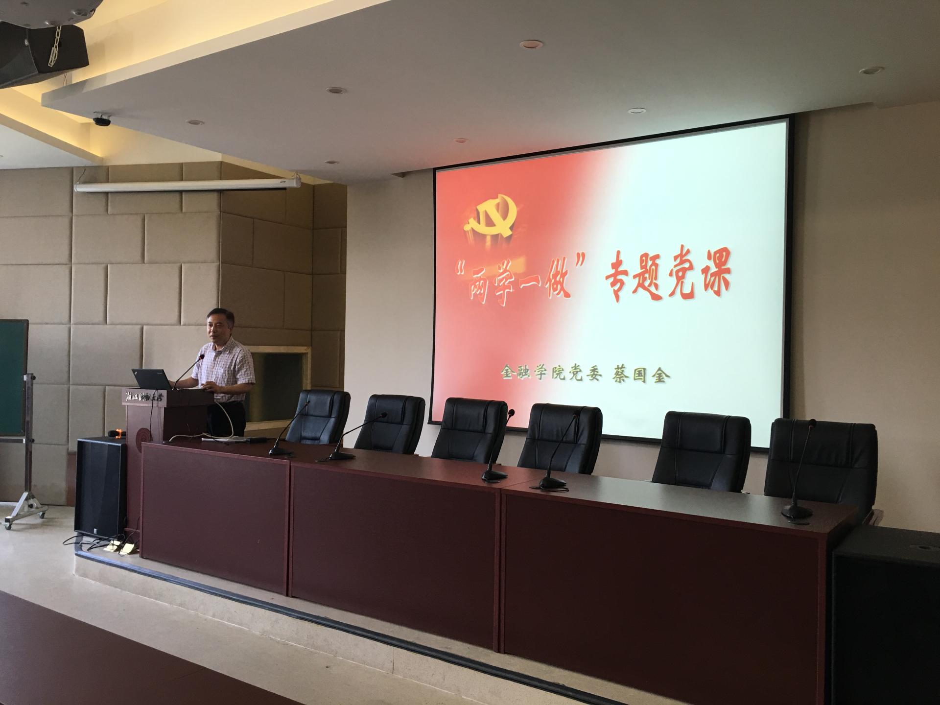 2016621日下午,黄色仓库 党委书记蔡国金在学院楼报告厅给全体教工党员上了一堂“两学一做”专题学习教育的党课。主要介绍了“两学一做”学习教育的丰富内涵、重大意义和要求,对党章党纲进行了详细解读,对系列讲话进行了概要介绍。重点强调了“两学一做”对共产党员的要求,要求每位共产党员要学习党章党规、学习系列讲话,做合格党员,做到讲政治、有信念,讲规矩、有纪律,讲道德、有品行,讲奉献、有作为。