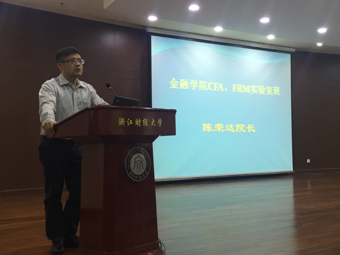 CFA、FRM实验班(2016年)招生宣讲活动在学术中心第一报告厅顺利展开。陈荣达院长出席了本次活动,并做了重要讲话。上海高顿财经相关负责人、学院相关负责人以及2015级全体同学参加了本次活动。