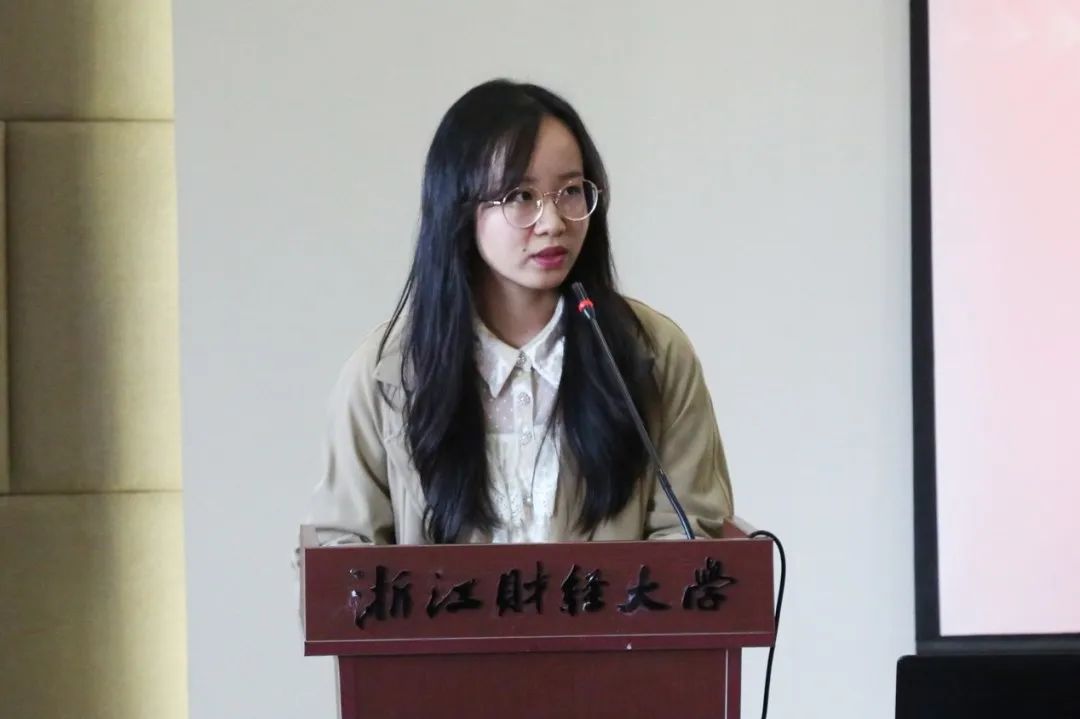 接着,浙江盈阳资产管理股份有限公司董事邵斐校友代表讲话。她提到,“盈阳金融突出贡献奖”已评审七年,很高兴看到七年来学院教学质量不断提高、科研与社会服务建设不断提升、学科专业建设不断突破、育人成果成效显著。她衷心希望在黄色仓库