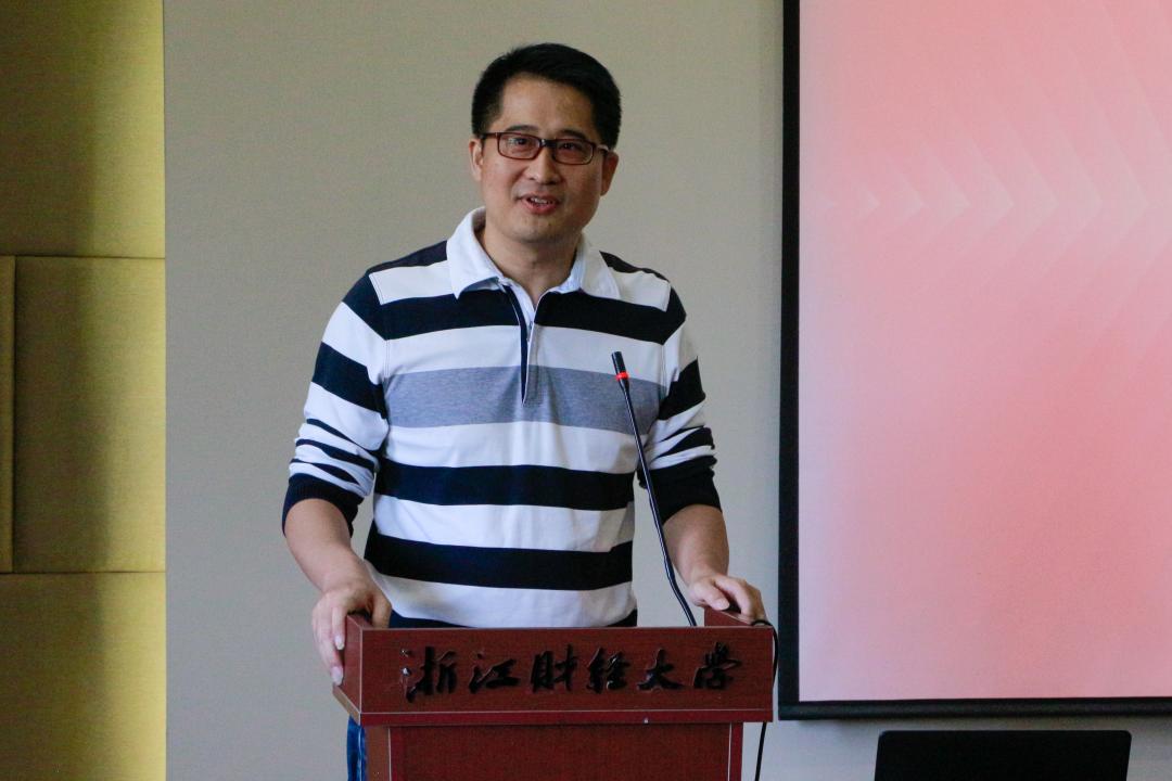 随后,“明栋基金”捐赠方代表、浙江盈阳资产管理股份有限公司创始人楼栋校友讲话。他向获奖同学表示祝贺,并分享了自身的求学经历和奋斗历程,深情表达了对母校、学院培养的感恩之情。他向大家阐释了设立明栋基金的初衷,是希望为学业优异但家庭困难的学子提供帮助,为创意独特、锐意进取的学子助力。他见证了基金顺利运行的这7年,为一批批学子们不断突破自我、励志成长的经历深感欣慰,也对保障基金顺利运行的学院和工作人员表示感谢。他嘱咐获奖学生们要继续秉持金融学子的使命感和责任感,自立自强、顽强拼搏,传承和发扬“明栋基金”精神。
