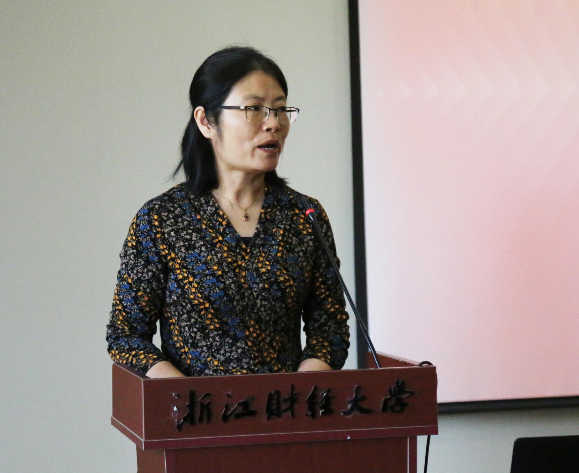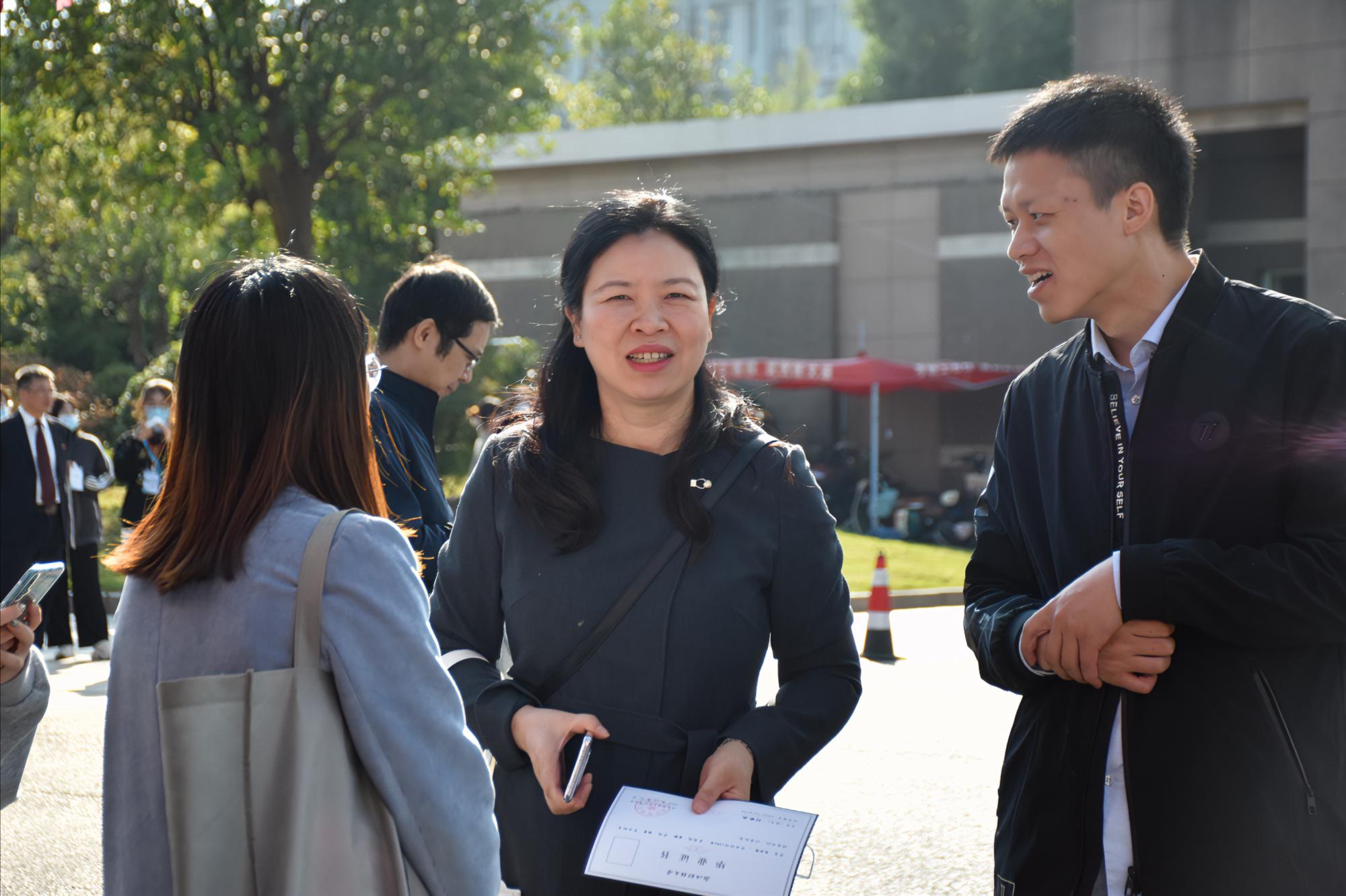 接着,浙江盈阳资产管理股份有限公司董事邵斐校友代表讲话。她提到,“盈阳金融突出贡献奖”已评审7年,很高兴看到七年来学院教学质量不断提高、科研与社会服务建设不断提升、学科专业建设不断突破、育人成果成效显著。她衷心希望在黄色仓库