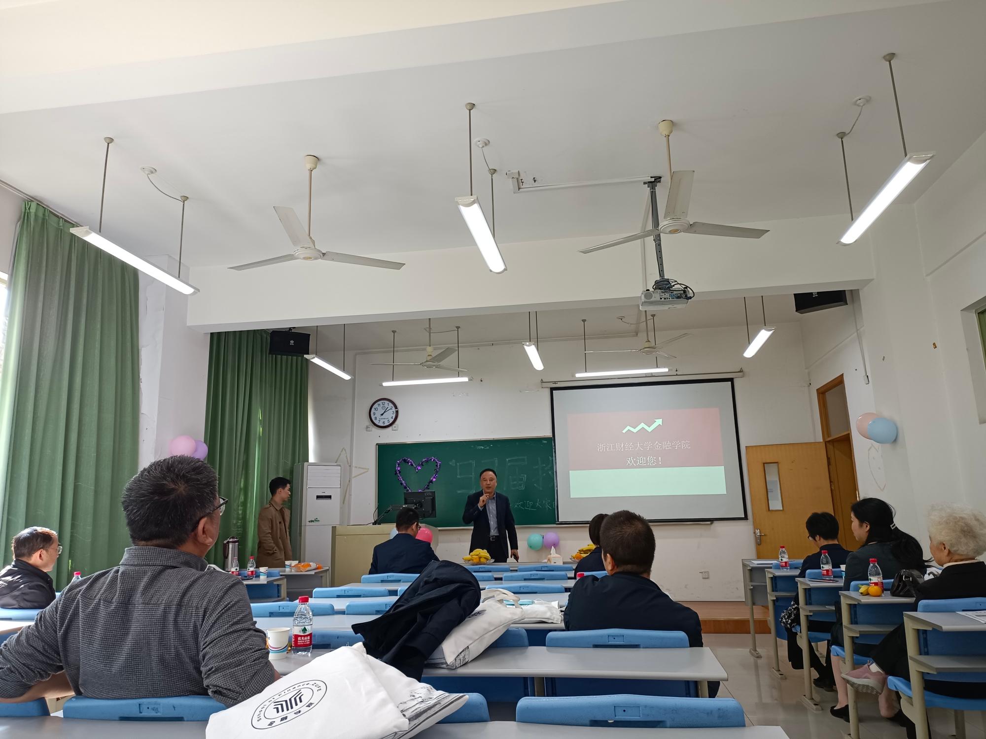 随后,“明栋基金”捐赠方代表、浙江盈阳资产管理股份有限公司创始人楼栋校友讲话。他向获奖同学表示祝贺,并分享了自身的求学经历和奋斗历程,深情表达了对母校、学院培养的感恩之情。他向大家阐释了设立明栋基金的初衷,是希望为学业优异但家庭困难的学子提供帮助,为创意独特、锐意进取的学子助力。他见证了基金顺利运行的这7年,为一批批学子们不断突破自我、励志成长的经历深感欣慰,也对保障基金顺利运行的学院和工作人员表示感谢。他嘱咐获奖学生们要继续秉持金融学子的使命感和责任感,自立自强、顽强拼搏,传承和发扬“明栋基金”精神。