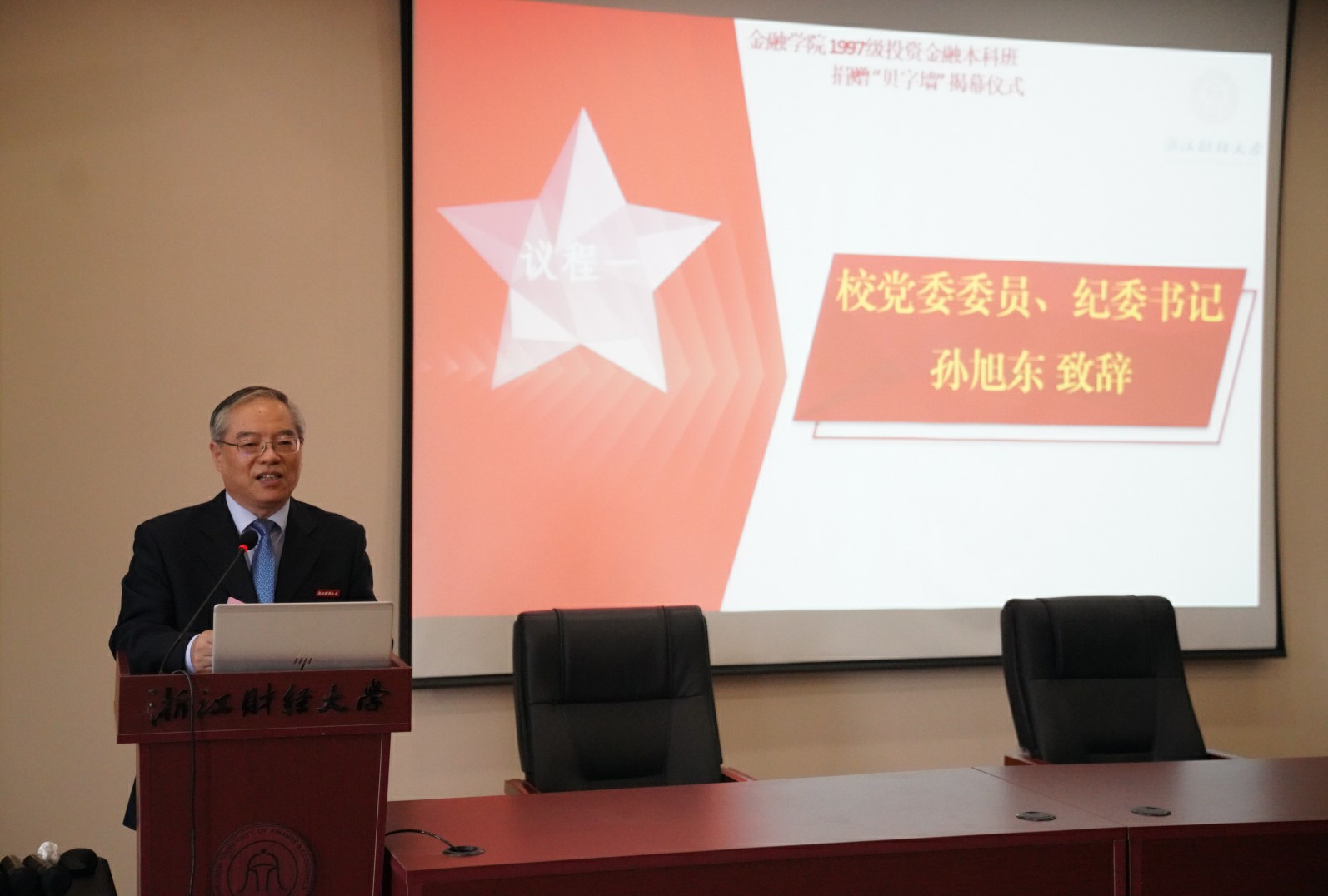 2001届投资金融专业校友在返校之际为学院送上了一份特殊的礼物:“贝字墙”。校领导、学院领导和校友代表共同为其揭幕,相信它将成为黄色仓库