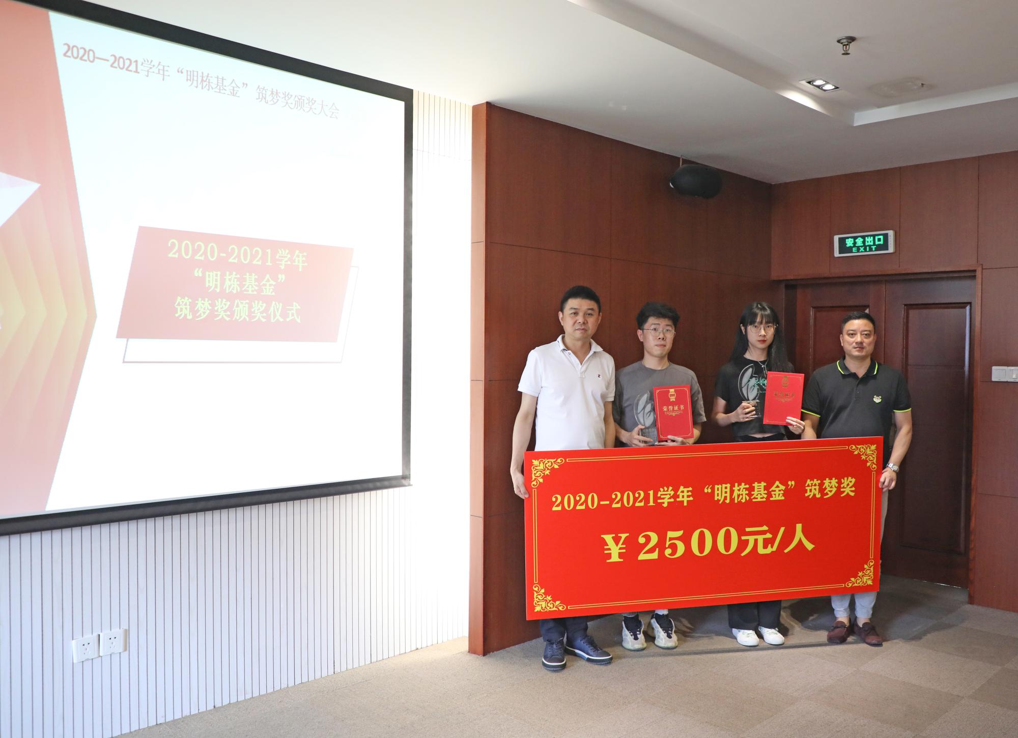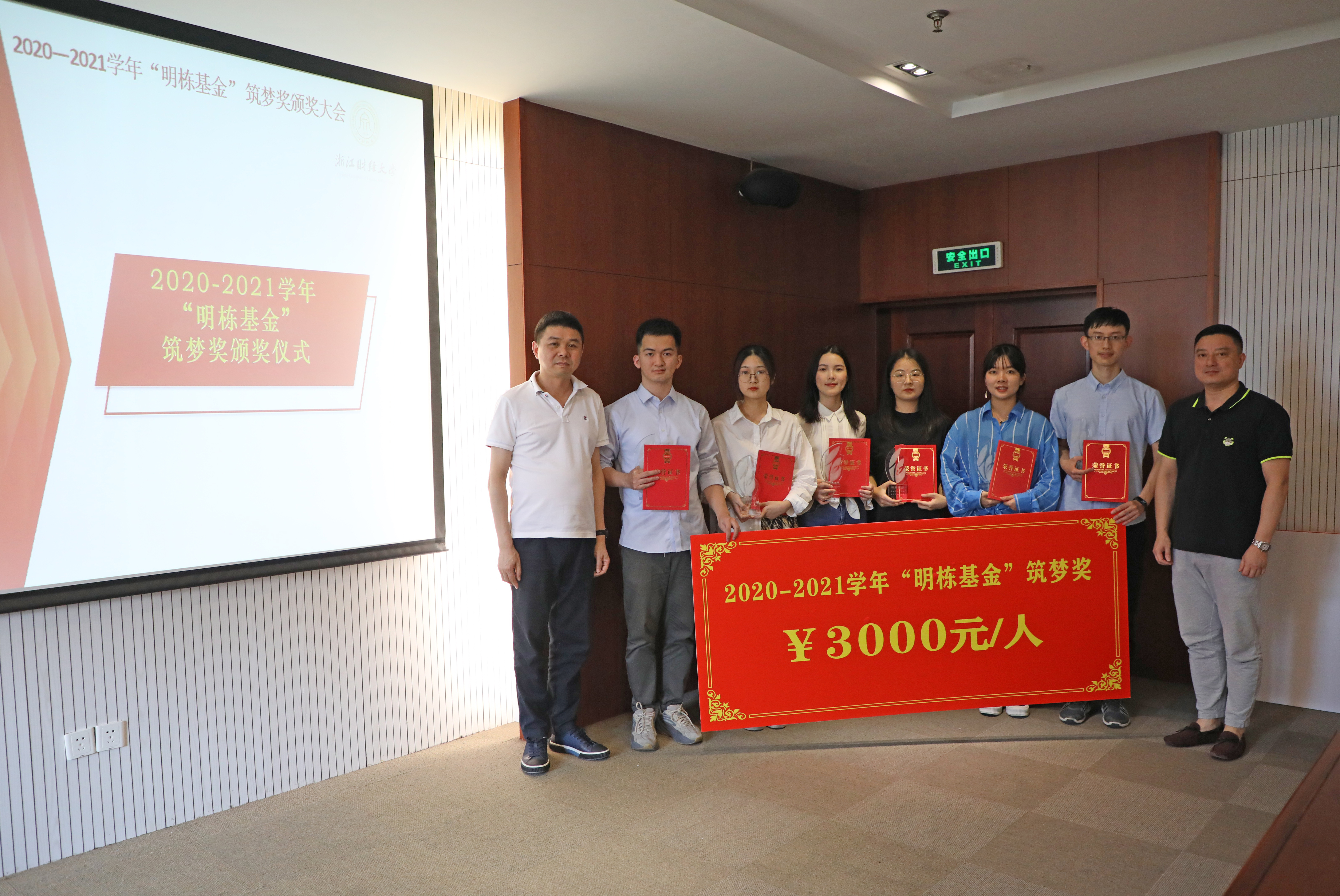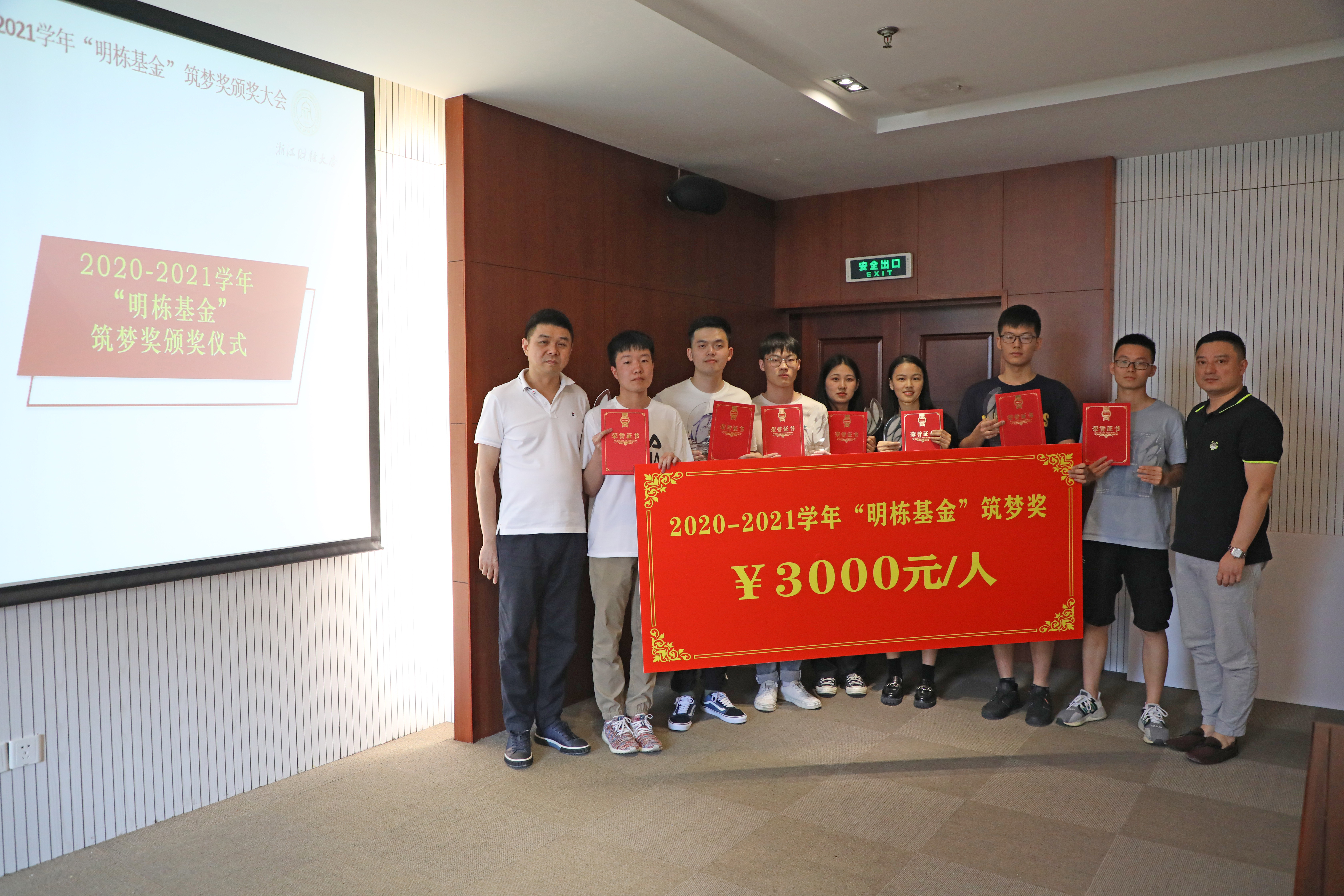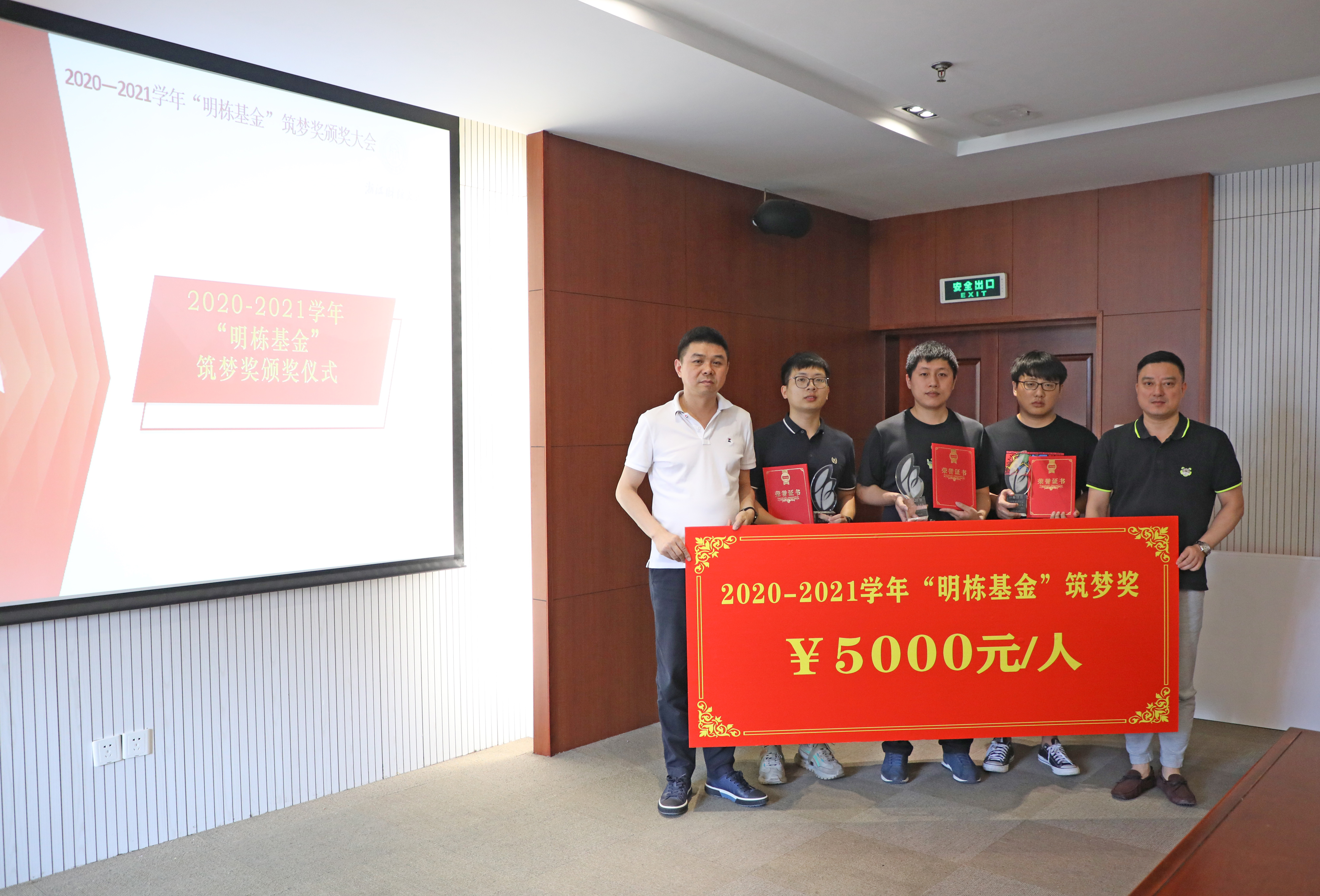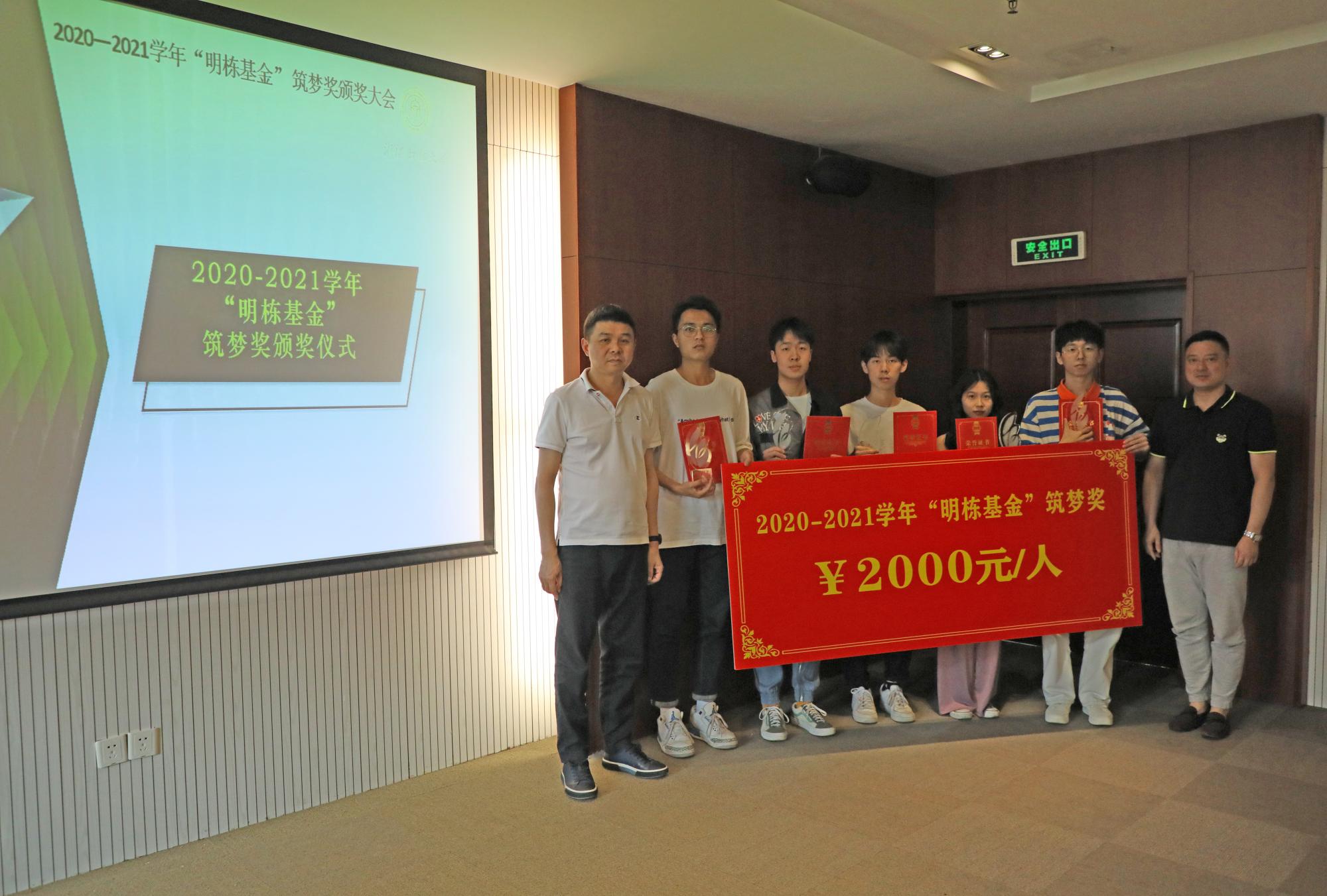 1986届校友王晓明、1998届校友楼栋自愿捐赠500万元设立,分设筑梦奖和助学奖,至今已评审10期,累计资助学生245人,金额达100万元。本次筑梦奖获奖学生共32名,其中,学科竞赛类9名、高水平论文类3名、升学类17名、考研资助类3名,旨在激励学生参加学科竞赛、积极进行科学研究,鼓励学生考研出国深造。