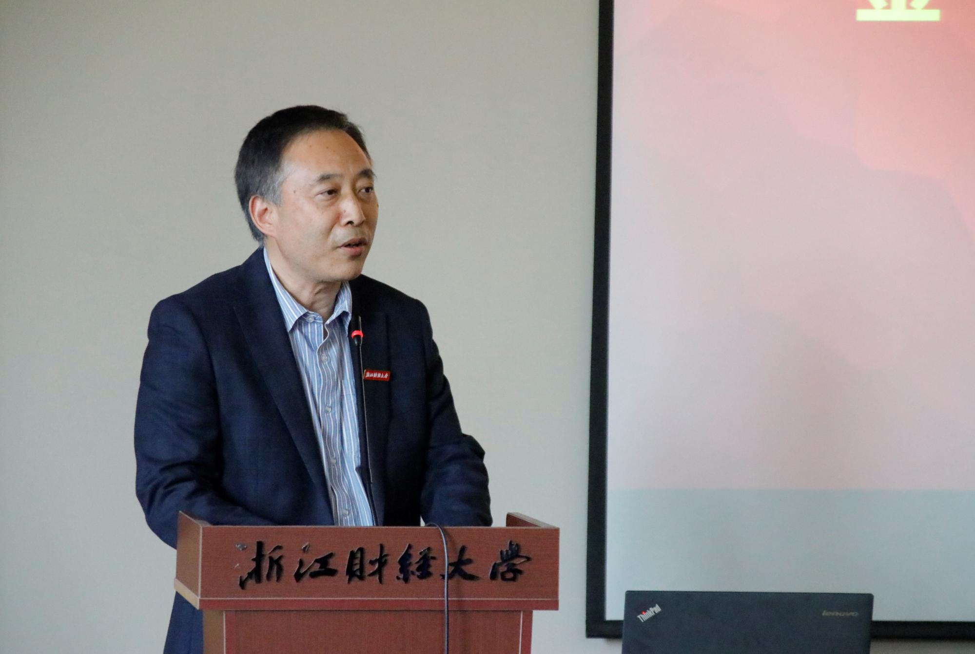 蔡国金书记致辞中对盈阳资产和楼栋等优秀校友一直以来心系母校、关心母校的举动表示衷心感谢,向获奖的老师表示祝贺,并对学院的今后发展充满信心。
