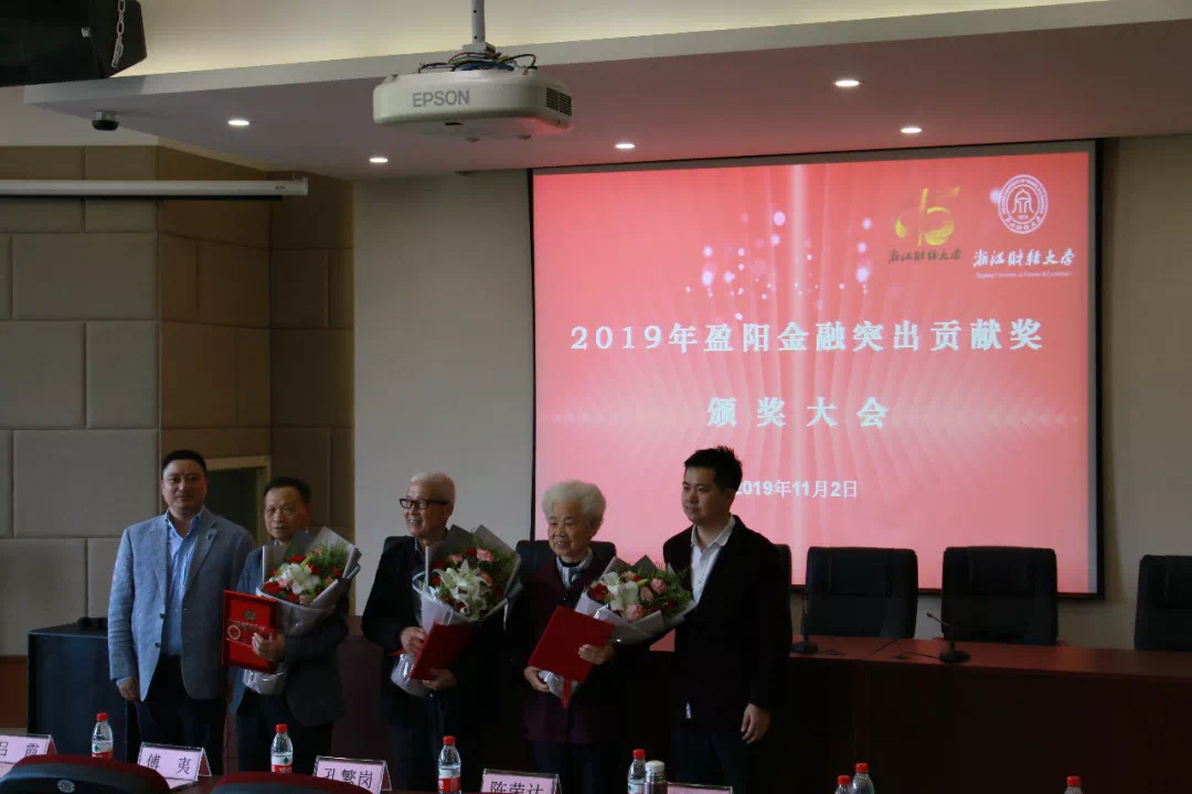 此次评审中,退休教师楼远获得2019盈阳金融突出贡献奖特殊功勋类金奖,陆建章老师、李仙娇老师和董太亨老师分别获得特殊功勋类银奖;何运信老师获得育人类金奖,傅俊辉老师、郗河老师、周海珍老师、刘剑锋老师和林基老师分别获得育人类银奖。