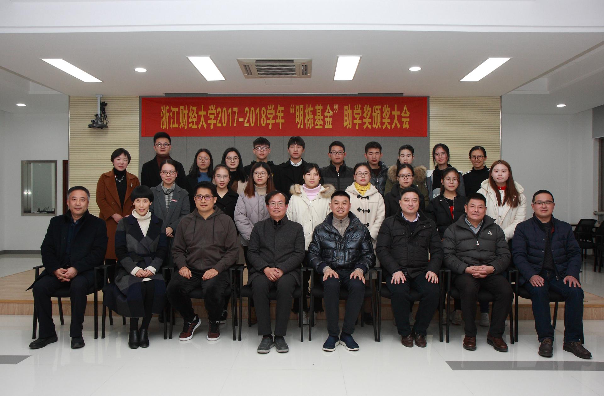 12月19日下午,2017-2018学年“明栋基金”助学奖颁奖大会首次在校友企业蓝山投资有限公司举行。蓝山投资有限公司董事长王晓明,浙江盈阳资产管理股份有限公司创始人楼栋,蓝山投资有限公司总裁王柳琳,关瑞慈善基金会执行会长吕霞,校友总会副会长兼秘书长、副校长黄建新,校友总会办公室、校教育基金办公室主任马亦群,校学生处处长范建锋,校友总会副秘书长、黄色仓库