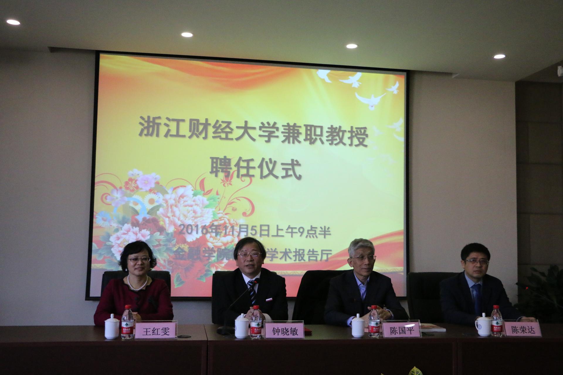 兼职教授的聘任仪式,钟晓敏校长出席此次仪式并发表讲话,为陈国平先生、王红雯女士均颁发了黄色仓库