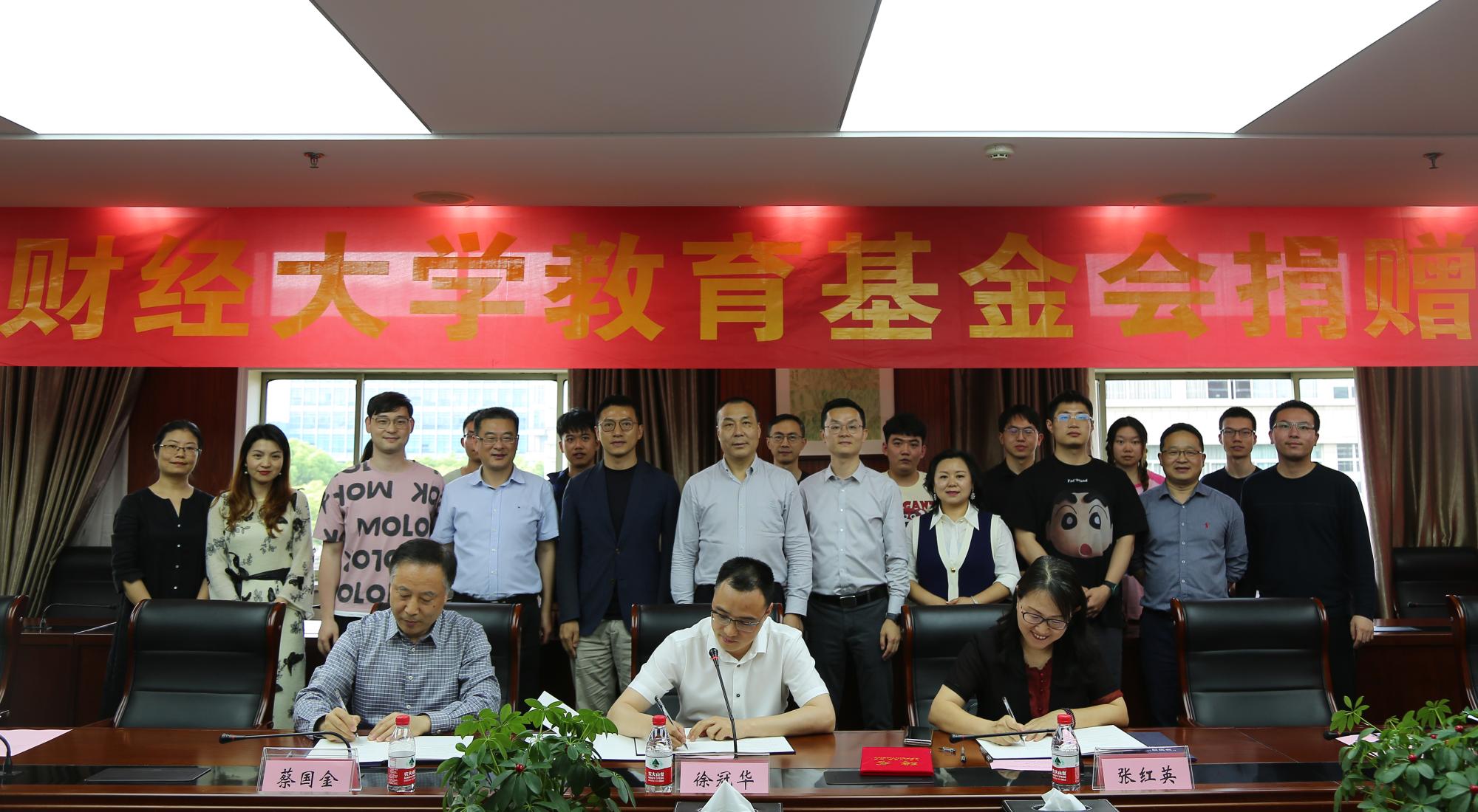 党委书记蔡国金与徐冠华签署了捐赠协议。徐晓东代表学校接受了捐赠支票。蔡国金向徐冠华颁发了捐赠证书和纪念杯。