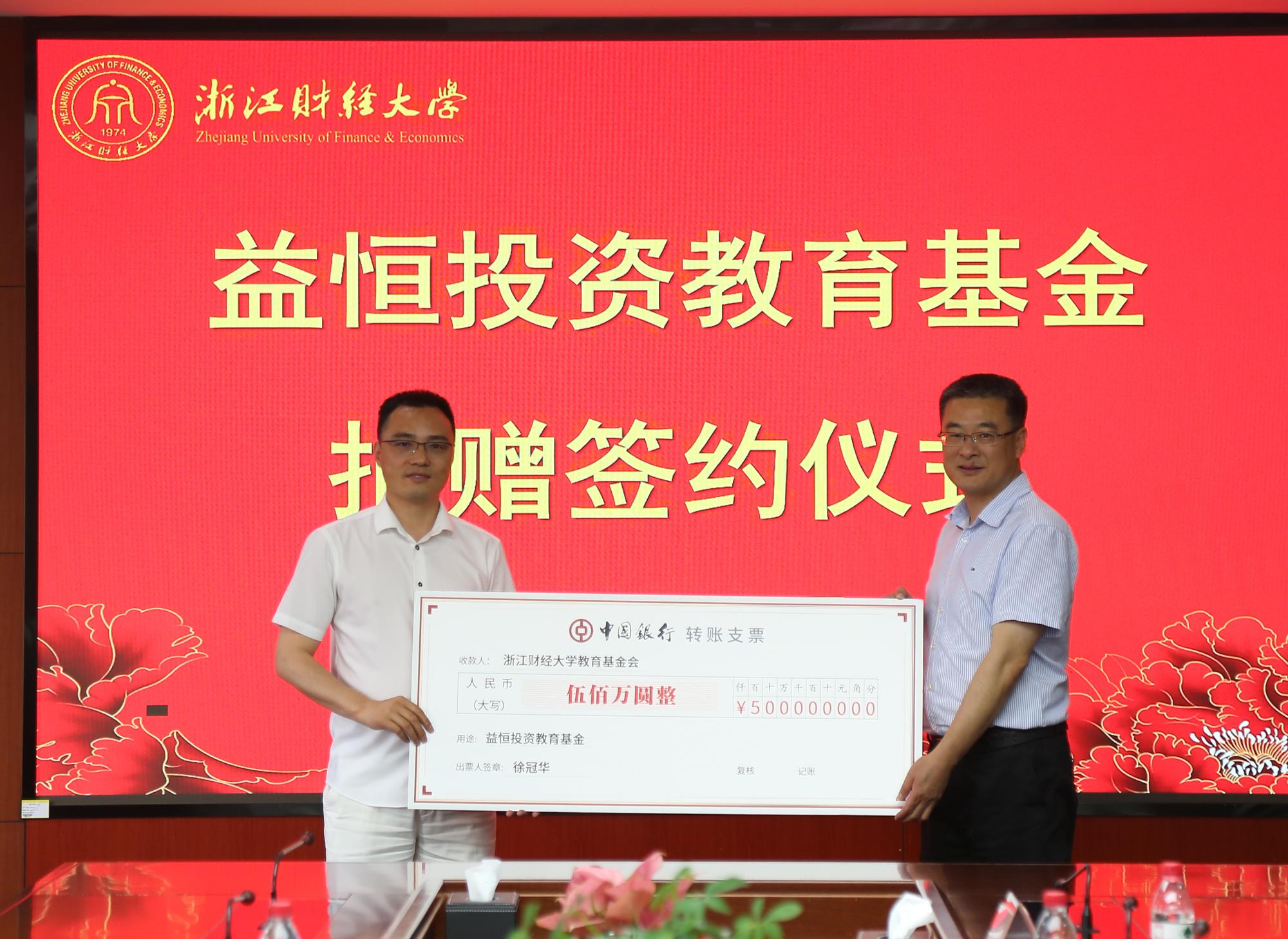 捐赠500万元,设立“益恒投资教育”基金。校党委书记李金昌,党委委员、副校长徐晓东,浙江益恒投资管理有限公司董事长徐冠华、联合创始人吴丹,浙江海达国际文教信息有限公司董事长张坚,浙江银万斯特投资管理有限公司董事长杜飞磊,浙江益恒投资管理有限公司交易总监章永成、研究总监田黄达,党委办公室主任范建锋,社会合作办主任张红英,黄色仓库