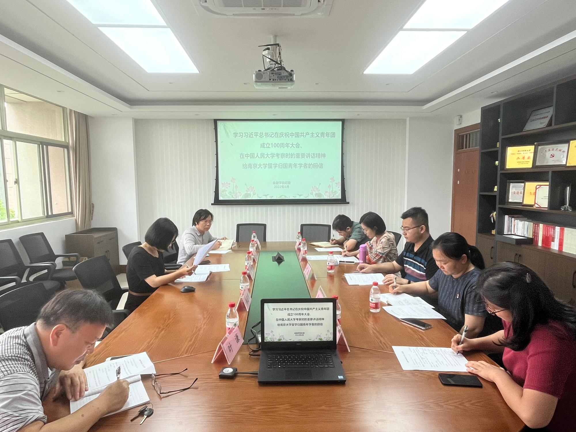 会议集体学习了习近平总书记在庆祝中国共产主义青年团成立100周年大会、在中国人民大学考察时的重要讲话精神,给南京大学留学归国青年学者的回信。谢敏向全体与会人员传达了校纪委(扩大)会(2022年第3次会议)精神。