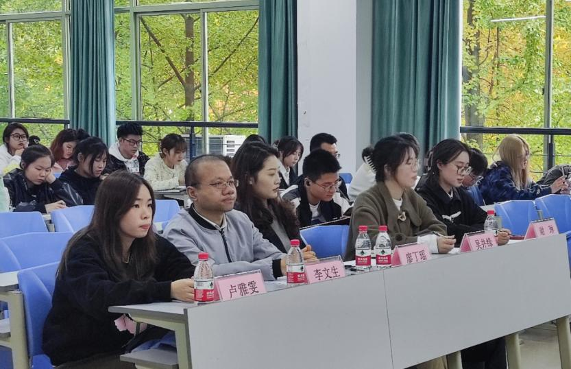 专职组织员翟丽媛,学生工作办公室副主任谢琳,辅导员李文生、廖丁瑶,学生代表校广播台台长卢雅雯同学、金融工程学会副会长吴井缘同学等出席并担任本次比赛的评委。