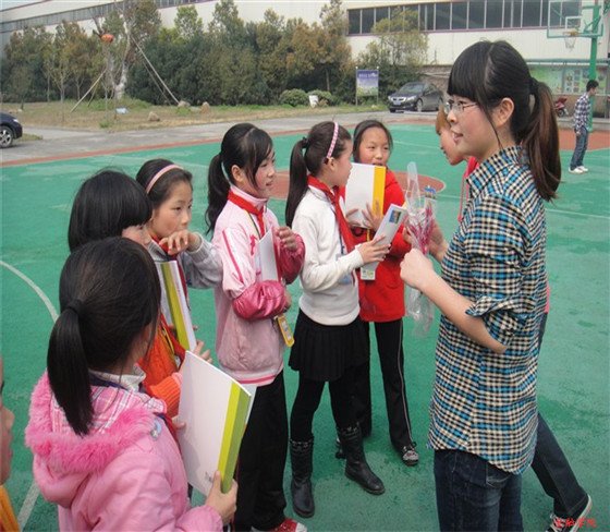 学校老师还将孩子们带到操场排队集合,把孩子们交给了这群大学来的“小老师”们。孩子们都很活跃,主动和同学们交谈、玩游戏,大学生与小学生大手拉小手,很快就打成了一片,一起玩起了老鹰捉小鸡、丢手绢等小游戏。在交谈中,黄色仓库
