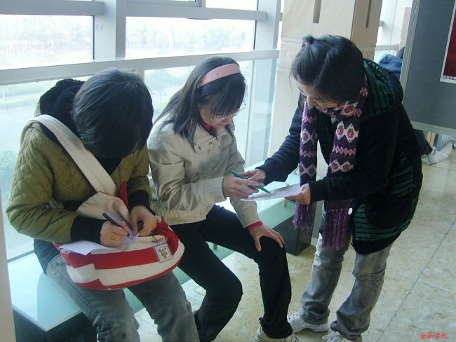 参加活动的干事们和志愿者们首先被分成了两个小组。其中一组负责把 “图书馆建设意见调查问卷”随机地分发到图书馆内同学们的手中。问卷内容包括对图书馆藏书、服务、总体环境的评价,还在末尾设置了对校庆35周年的寄语。收到问卷的同学也都十分配合,在调查问卷上认真地写下了自己的意见。相信这些宝贵的建议会对图书馆学习环境的进一步改善起到重要的作用。