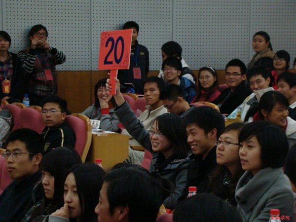 活动开始,主持人邀请张虹老师为金石拍卖行揭牌,并敲响第一锤。随后,育才学校教导主任汪小红老师与信管协会会长施菁完成了对接仪式。随着拍卖师的出场,拍卖会正式拉开帷幕。拍卖师先请主持人宣读了拍卖须知,随后便开始了标的竞拍。第一件拍品是一套茶具,出人意料的是,它最终被育才学校的副校长骆喜祥老师拍下。随后一件件展品相继亮相:吉他、西湖龙井、西装……给观众带来一个个新的惊喜。在拍卖会中场休息时,主办方还进行了趣味十足的“零元起拍”活动,诸多超值的拍品组合均以0元起拍,五角报价递增,引起了全场的阵阵竞拍高潮。