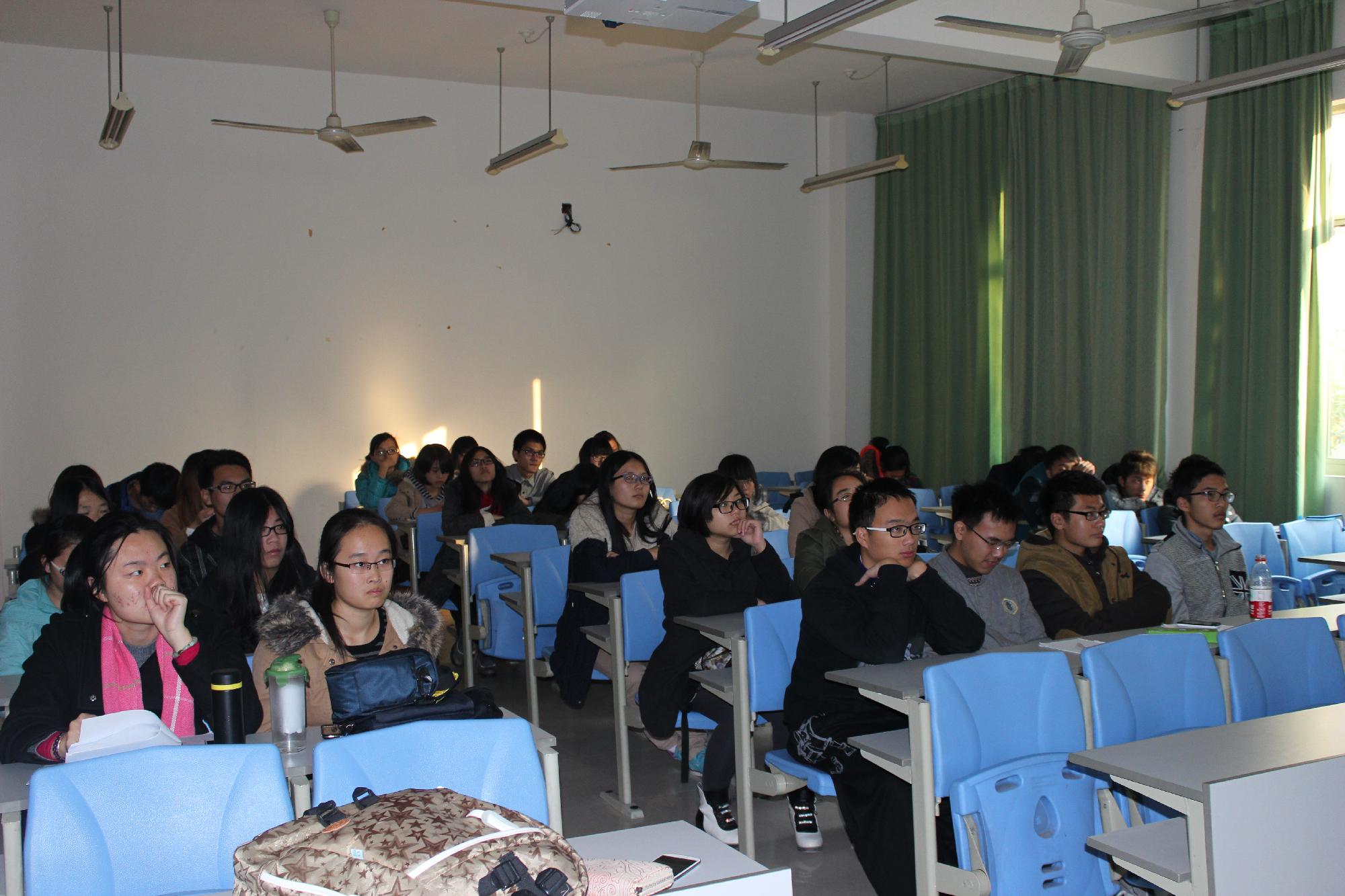 信用管理专业系主任叶谦教授首先上台,和大家聊起了互联网金融这一概念,为大家拨开互联网金融神秘的面纱。叶谦教授向我们描述互联网金融是未来金融业发展的方向之一,虽然它仍处在起步阶段,但是其前途不可限量。针对互联网金融,他向听众提出了自己的一些看法:第一,互联网巨头及阿里巴巴拥有庞大的用户,只要完成社交层面向商业层面的转变,便拥有大数据,是极大的优势;第二,互联网金融从业公司一旦能有所创新,建立可行稳固的互联网金融商业模式,便能成为行业的领头羊,而不像传统的金融机构需要长期良好的运作来获得业界口碑;第三,互联网金融面临监管的问题,这一方面没有专门的监管机构,银监会、证监会等机构多方错乱的监管不利于行业的发展。叶谦教授通过浅显易懂的讲解从宏观上为听众们梳理了脉络,听众们也都全神贯注,理解并思考教授所讲解的内容。