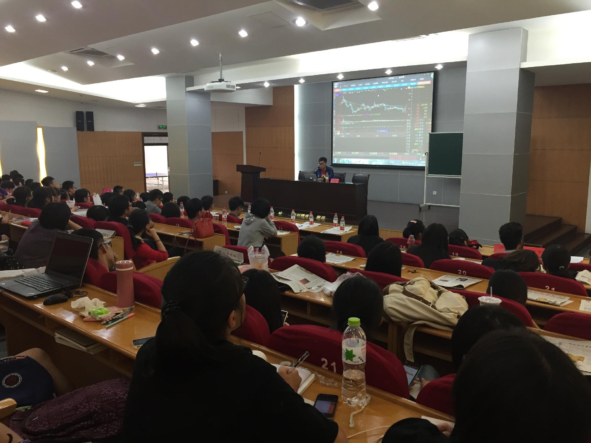 开幕式的最后,金锐先生为在场同学介绍了股市基本知识。他结合了当下股市的行情进行讲解,并给出了不少实用的建议。在场同学都听的十分入神,受益匪浅。嘉宾结束讲解之后的提问环节,不少同学围着李王赐先生与金锐先生询问关于炒股方面的问题,体现了同学们对本次比赛浓厚的热情。