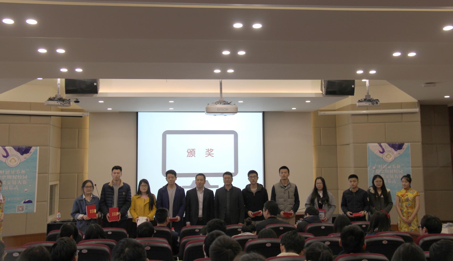 金融工程学会承办的首届“财通证券杯”股票期权校园模拟交易大赛闭幕式暨颁奖典礼在学院楼202报告厅隆重举行。本次竞赛得到了浙江省财通证券股份有限公司的大力支持,在历时1个多月的时间里有来自全校500名学生参与了本次竞赛。