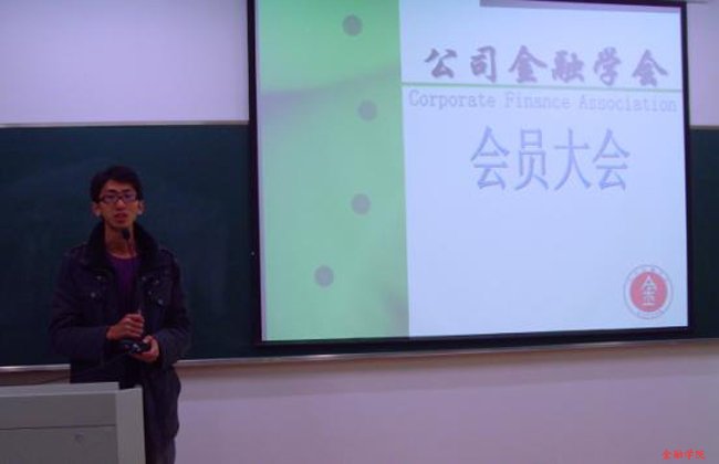 2008年12月9号下午2点,公司金融学会换届选举仪式暨会员大会在浙江财经学院黄色仓库 楼209准时举行。来自不同专业,跨越四个年级的会员们,齐聚一堂,见证公司金融学会薪火传承的一刻。