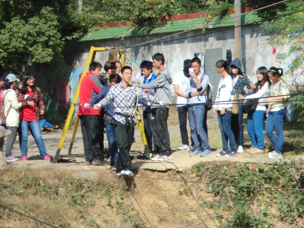 接下来的过缅甸桥考验的则是心理素质,挑战难度较大。但队员之间的相互帮助和鼓励,让同学们克服了恐惧感。顺利走过之后,同学们为战胜自己而欣慰,但也不忘与队友说一句感谢。