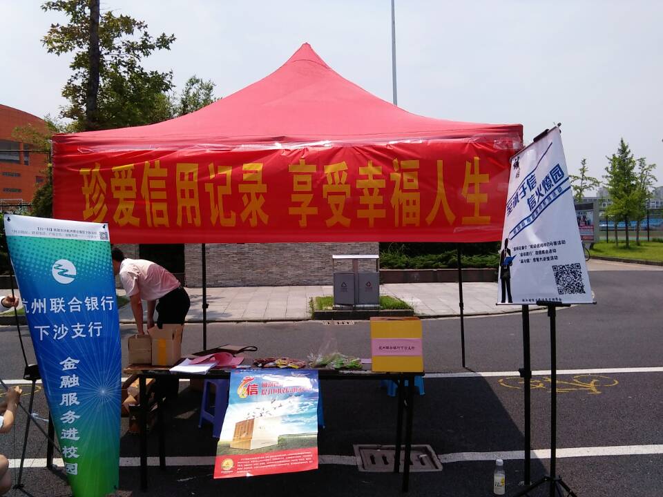 6月12日中午,杭州联合银行下沙支行与我校信用管理学会于文化长廊联合举办了以“征信教育、重视诚信”为主题的信用宣传活动,来自杭州联合银行下沙支行的部分工作人员与信用管理学会成员进行了现场宣传。