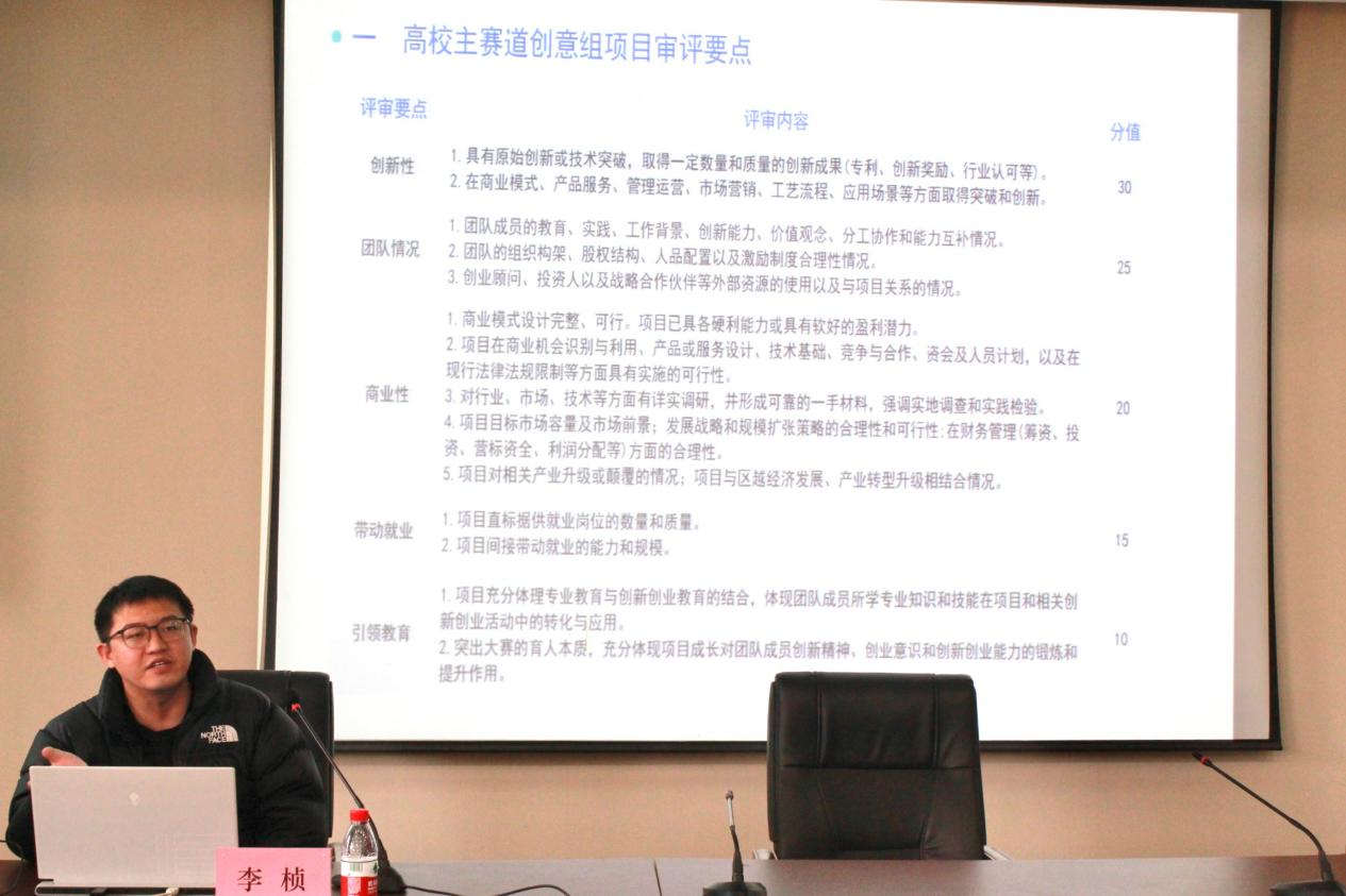 的优秀作品为案例,从“为什么我们要做”、“为什么我们能做”、“我们怎样能做好”、“可以做成什么样”等方面作了进一步的分析。他着重分享了竞赛的益处,也强调了专业引导、项目特色、优势融合、项目包装是做好优质项目的关键。李老师也倾囊相授,以高质量商业计划书和公益计划书为例,详实地介绍了各角度切入点与高分面。讲座的最后,李桢老师鼓励同学们在双创路上大胆造梦、勇敢追梦。