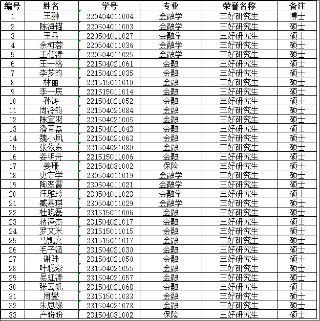 三好研究生初评名单:
