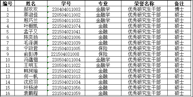 优秀研究生干部初评名单: