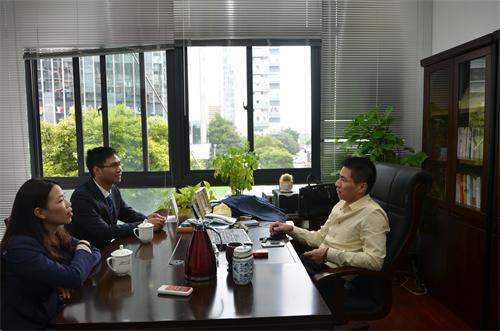 刚走进陈总的办公室,便闻得一阵茶香。陈肖予学长起身亲自迎接我们,邀我们与他对坐,举手投足间流露出的随意而优雅的风度让我们倍感亲切。采访伊始,陈肖予学长亲切的话语拉近了我们之间的距离。回忆往昔,学长如数家珍地向我们谈起他大学四年的美好时光,那段懵懂而热烈的青葱岁月俨然成为了他记忆中最柔软的地方。学长幽默诙谐的话语常常令在场的我们捧腹大笑,他敢做敢为、可亲可敬的品质也深深打动了我们。他讲到,现在回想起当年大学里的趣事还是挺有意思的,告诉我们要趁着年轻在大学多制造点美好的回忆。陈肖予学长首先强调了情商的重要性,他认为在学好专业知识的同时也要注意情商的培养与提高,处理好自己的人际关系,这对以后的工作生活都有很大影响。在大学里,要学好知识,也要好好把握自己的青春,学会享受青春的美好。而在工作时,则要学会适应这个社会,转换自己的思维角度,全身心投入,做好自己该做的事。