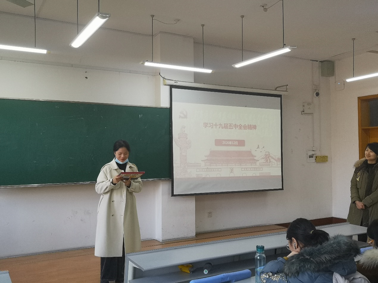 本科生第一党支部召开了党员转正、发展大会暨专题学习党的十九届五中全会和省委十四届八次全会精神会。支部全体党员、本次发展对象参加了此次大会。会议由支部书记吴轶韵同志主持。