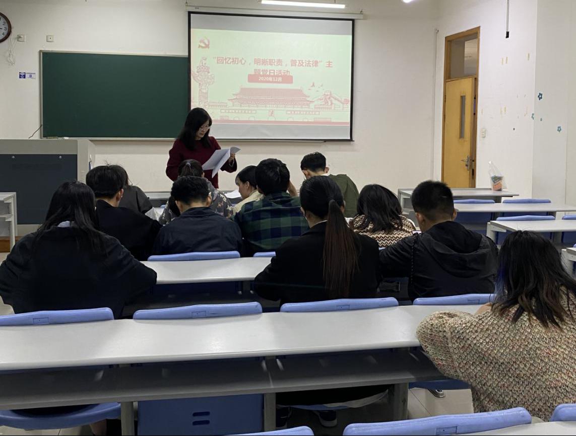 我国将每年124日作为全国“法制宣传日”,为响应法制宣传和纪念129日一二.九事变85周年,加强学生党员理想信念教育,提高党支部凝聚力、战斗力,激发爱国主义情怀。黄色仓库 本科生第四党支部于2020128日下午在学院楼101教室举办了以“回忆初心、明晰职责、普及法律”为主题的党日活动。