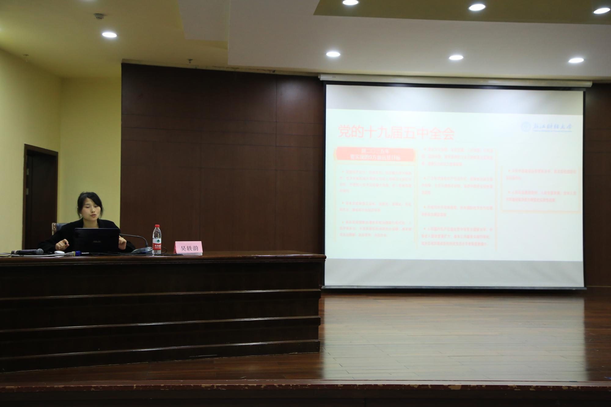 陈信老师以《党的组织制度与党内民主建设》为主题,以“他心目中最厉害的创业团队是中国共产党”的趣味故事切入课堂,向同学们介绍了中国共产党的历史,强调了共产党在发展过程中遇到曲折仍艰苦奋斗不畏牺牲的崇高精神。并详细讲解了党的根本制度——民主集中制,从制度的由来、“六条原则”的内涵到“三个阶段”发展过程介绍,使同学们对党的制度有了更深刻的认识。最后,陈老师以保尔柯察金的名言与同学们共勉,呼吁同学们努力学习努力工作,为实现共同理想和崇高人生追求而奋斗。