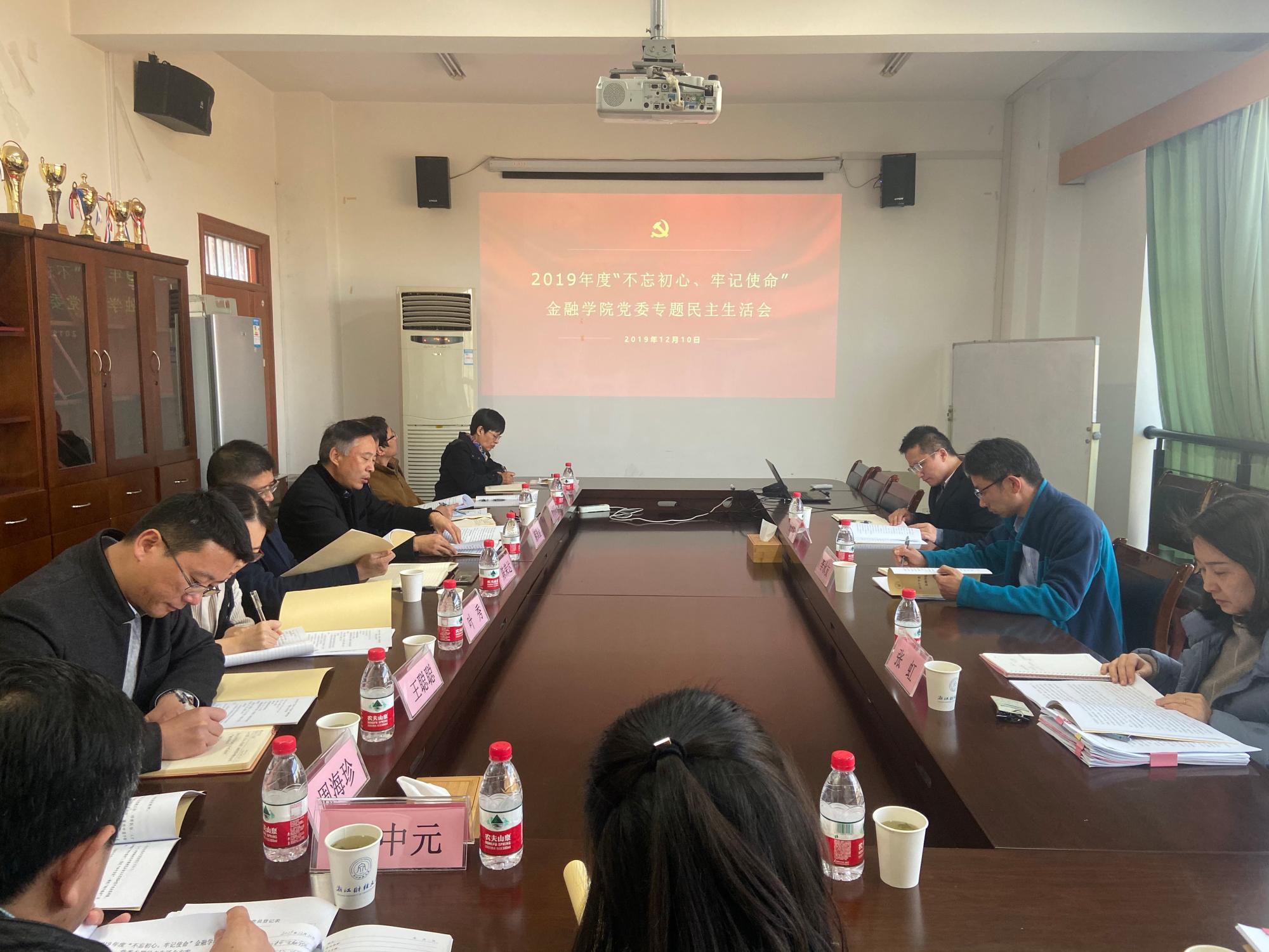 召开党委2019年度“不忘初心、牢记使命”专题民主生活会。副校长李永友、督导组成员会计学院党委副书记张虹、党校办干部张光先全程参加会议指导。学院党委书记蔡国金主持民主生活会,学院党员领导班子成员叶秀、朴哲范参加会议,学院领导班子成员陈荣达、王聪聪,学院党委委员钟立新、井冬梅,学院纪委委员徐敏、周海珍,教工第一党支部书记耿中元等列席会议。