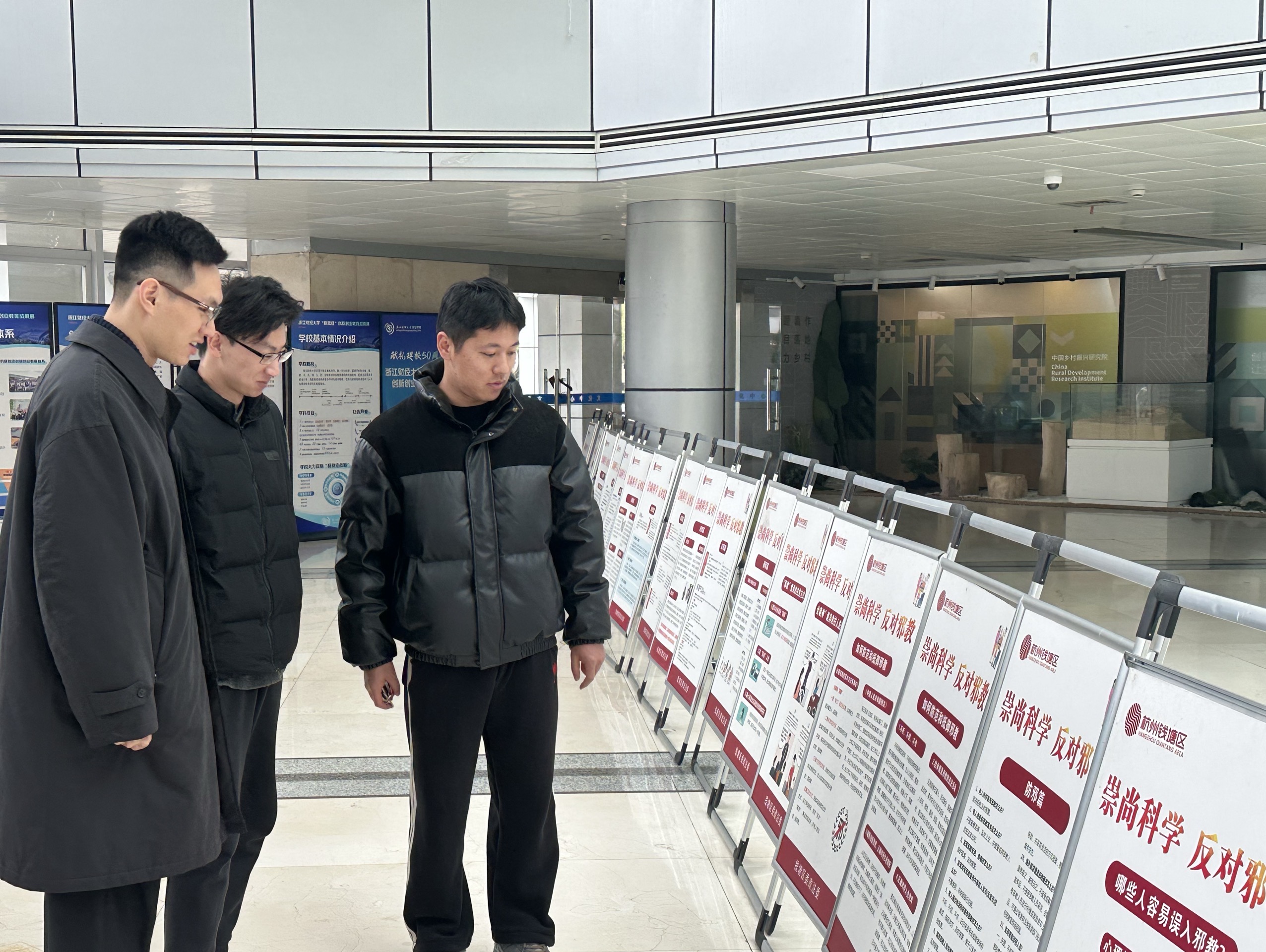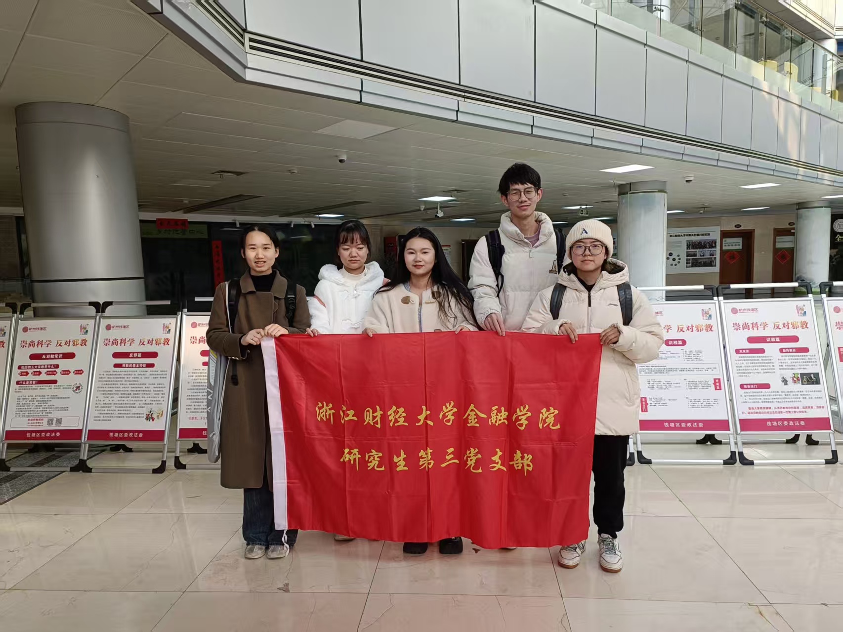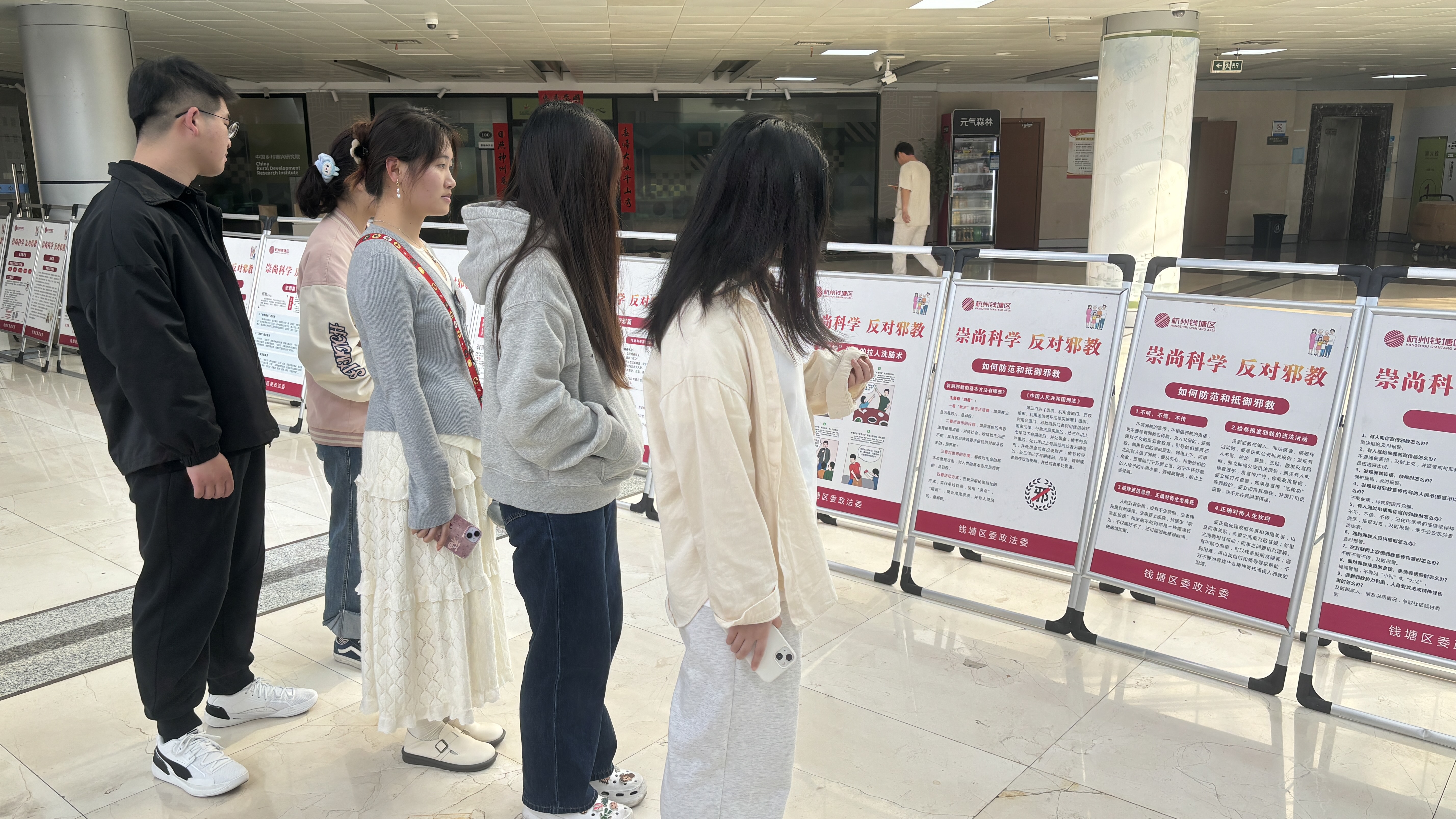 党委组织各支部党员前往创业学院,参观由钱塘区政法委和学校安全保卫部联合举办的“崇尚科学,反对邪教”主题宣传展。