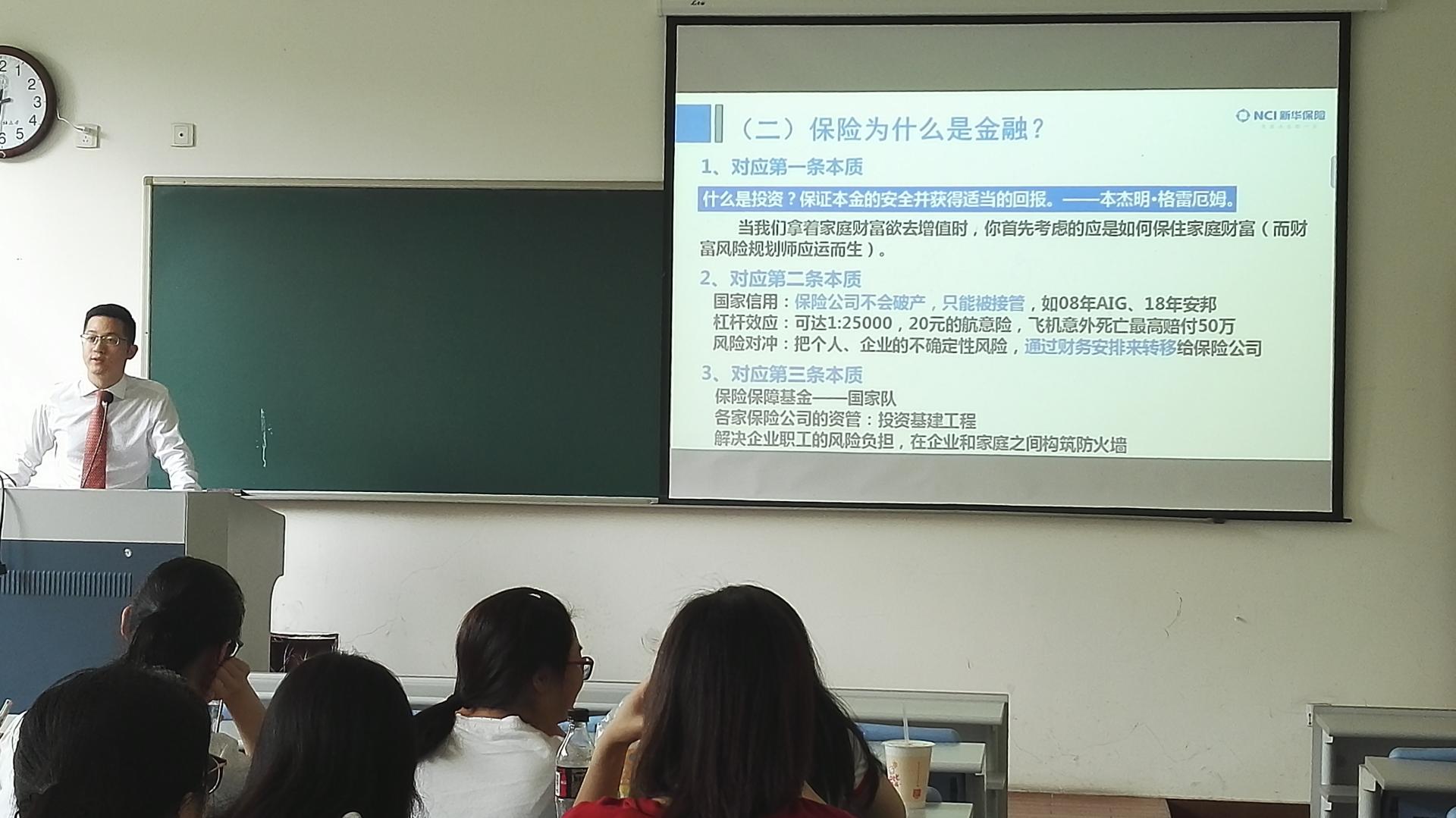 2018年5月14日上午,新华保险浙江省分公司保费部总经理梁一鸣走进《人身保险》课堂,作为保险学专业的“基地精英进课堂”活动,给2016级保险学专业的同学做了题为“见微知著,发现专业的实践意义——保险功用与企业实务”的专题讲座。不同于我们从教科书上...